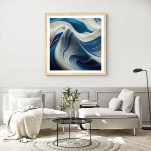 Poster in einem Rahmen aus heller Eiche - Fließfähigkeit von Blau und Weiß - 50x70 cm