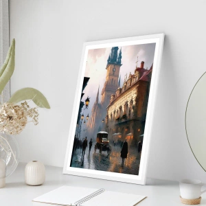 Poster in einem weißen Rahmen - Charme eines Prager Abends - 50x70 cm