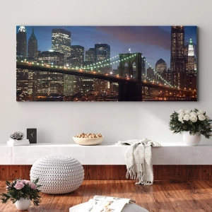 New York Bridge bei Nacht mit beleuchteten Gebäuden ist ein Gemälde, das elegante Innenräume perfekt ergänzt und eine Atmosphäre von Großstadtstil und Modernität schafft. Es ist die perfekte Wahl für alle, die urbane Landschaften und zeitloses Design schätzen.