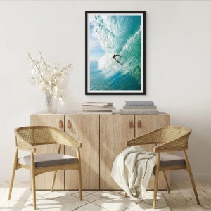 - Dieses Poster zeigt eine dynamische Szene eines Surfers, der in der prallen Sonne auf einer riesigen Welle reitet. Perfekt für Wassersportler und Adrenalinjunkies.