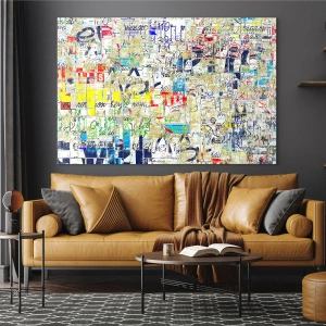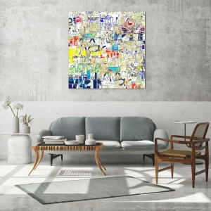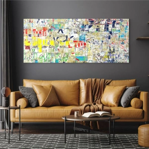 Glasbild - Bild auf glas - Eine abstrakte Komposition mit einer Mischung aus Farben und Inschriften. - 100x70cm - Es freut einfach die Augen - Moderne Wanddekoration für Wohnzimmer und Schlafzimmer ARTTOR