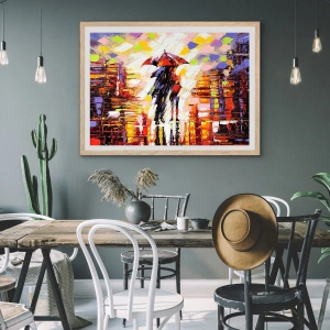 Poster in einem Rahmen aus heller Eiche - Gemeinsam durch die Nacht und den Regen - 30x40 cm