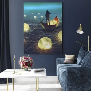 • Abstrakt, Fantasie, Boot, Fantasie, Menschen, Für das Büro, für das Arbeitszimmer, für das Esszimmer, für den Flur, für das Wohnzimmer, für das Schlafzimmer, Blau Gelb, Quadrat
