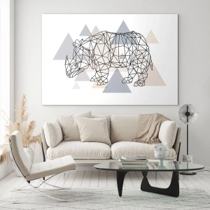Glasbild - Bild auf glas - Geometrische Zeichnung eines Nashorns auf hellem Hintergrund - 70x50cm - Struktur der Stärke - Moderne Wanddekoration für Wohnzimmer und Schlafzimmer ARTTOR