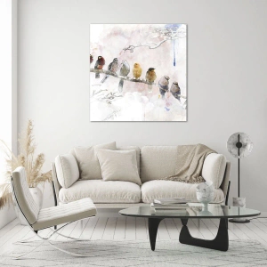 Glasbild - Bild auf glas - Bunte Vögel auf einem Ast im Aquarellstil - 160x50cm - Geflügeltes Treffen - Moderne Wanddekoration für Wohnzimmer und Schlafzimmer ARTTOR