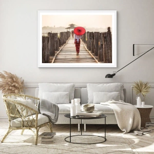Poster in einem weißen Rahmen - Auf der alten Brücke - 91x61 cm