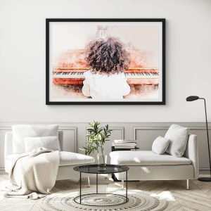 • Klavier, Musik, Musiker, Menschen, Musik, Pastell, Kunst, Vintage und Retro, Für das Büro, für das Arbeitszimmer, für das Esszimmer, für den Flur, für das Wohnzimmer, für das Schlafzimmer, Weiss-braun, Quadrat