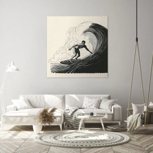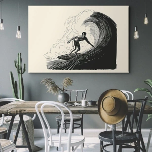 Das Motiv eines Surfers auf einer Welle symbolisiert Freiheit, Abenteuer und Harmonie mit der Natur. Es ist ein ideales Angebot für Wassersportler, aber auch für diejenigen, die ausdrucksstarke und dynamische Dekorationen schätzen. Dank seiner schwarz-weißen Farbgebung passt das Gemälde problemlos zu einer Vielzahl von Arrangements, von modern bis industriell, und verleiht jedem Interieur Charakter und Eleganz.