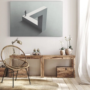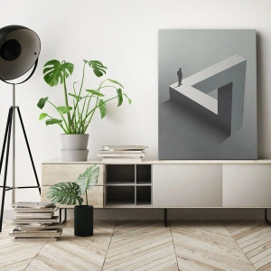 Bild auf Leinwand - Leinwandbild - Eine Figur, die auf einem Penrose-Dreieck in Grautönen steht. - 120x80cm - Es ist also doch möglich - Moderne Wanddekoration für Wohnzimmer und Schlafzimmer ARTTOR