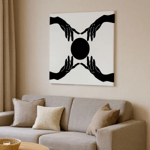 Bild auf Leinwand - Leinwandbild - Schwarze Hände in einer symmetrischen Komposition mit einer Kugel - 70x50cm - Geheimes Zeichen - Moderne Wanddekoration für Wohnzimmer und Schlafzimmer ARTTOR