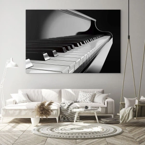 Glasbild - Bild auf glas - Klaviertasten in einer eleganten Schwarz-Weiß-Aufnahme - 160x50cm - Harmonie von Formen und Farben - Moderne Wanddekoration für Wohnzimmer und Schlafzimmer ARTTOR