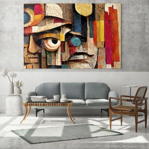 Glasbild - Bild auf glas - Bunte geometrische Gesichter im abstrakten Stil - 50x70cm - Ich sehe dich… - Moderne Wanddekoration für Wohnzimmer und Schlafzimmer ARTTOR