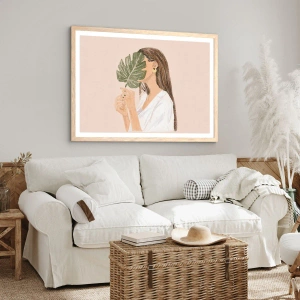 Poster in einem Rahmen aus heller Eiche - Geheimnisvolles Porträt mit Fächer - 50x40 cm