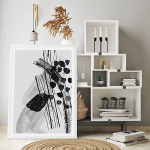 Poster in einem weißen Rahmen - Organische Schwarz-Weiß-Abstraktion - 91x61 cm