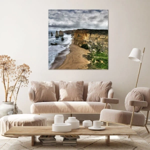 Bild auf Leinwand - Leinwandbild - Steilküste mit Strand und Felsformationen - 140x50cm - Rohe Schönheit - Moderne Wanddekoration für Wohnzimmer und Schlafzimmer ARTTOR