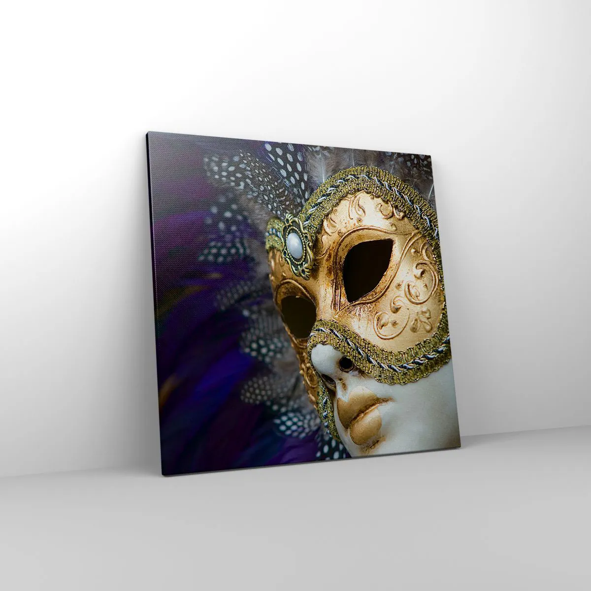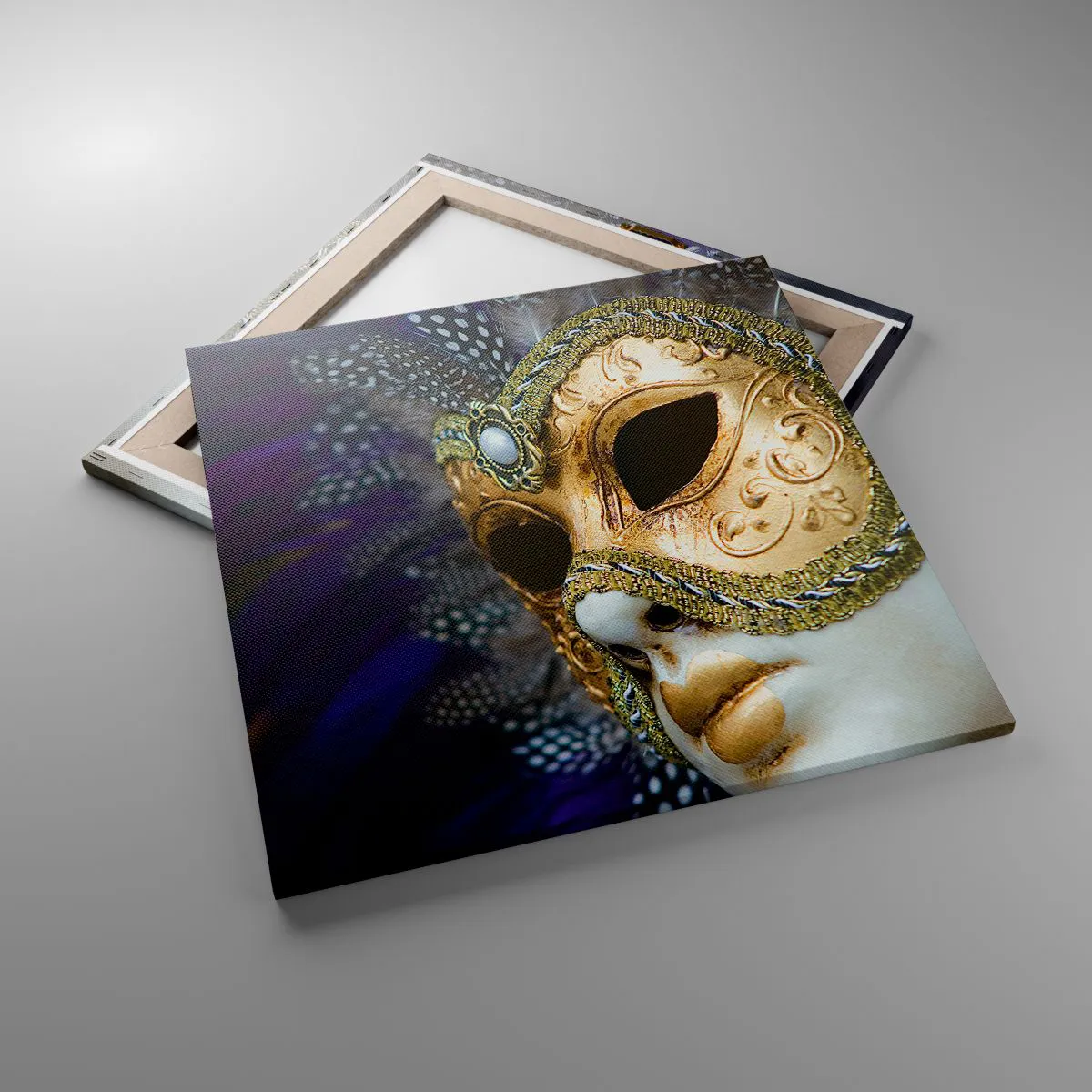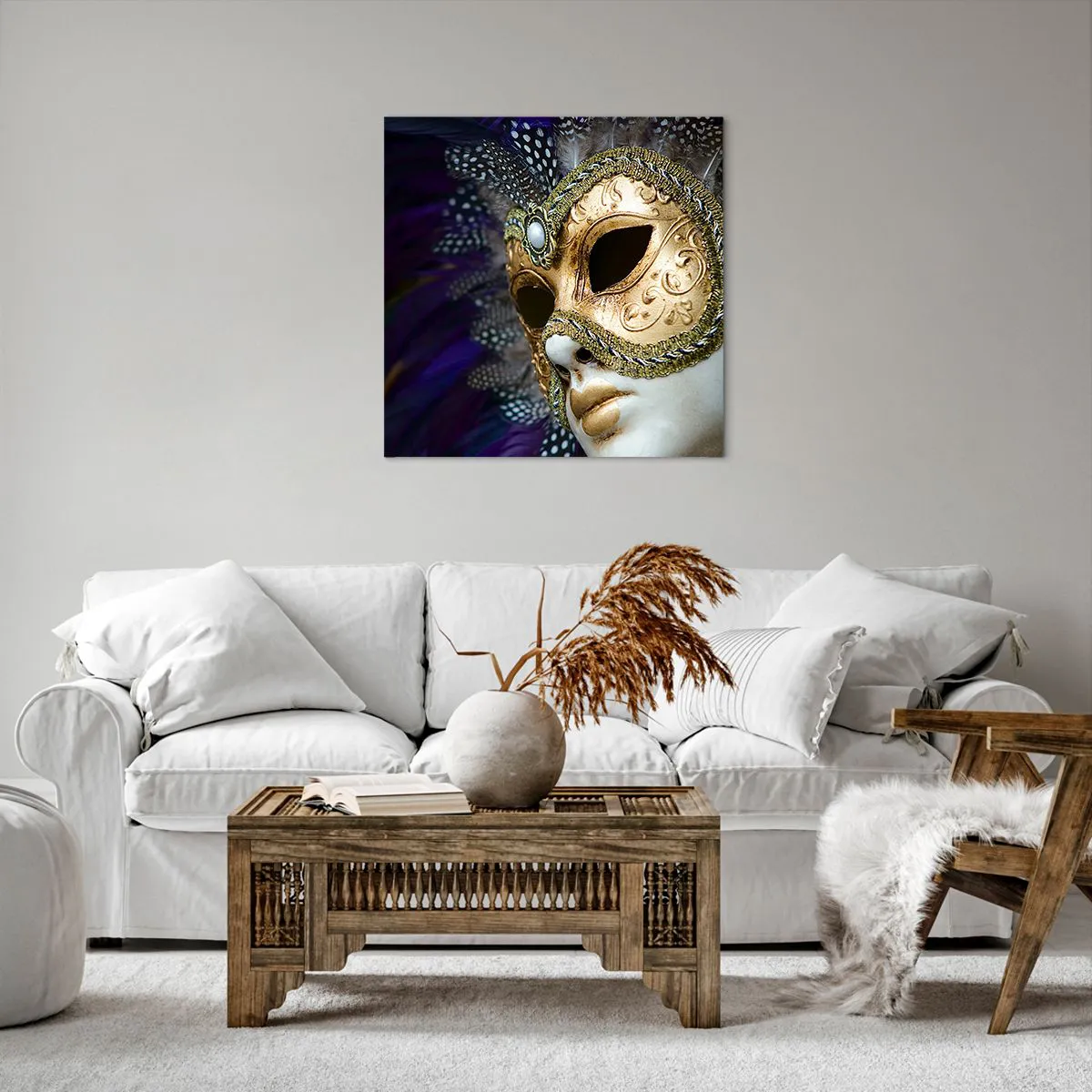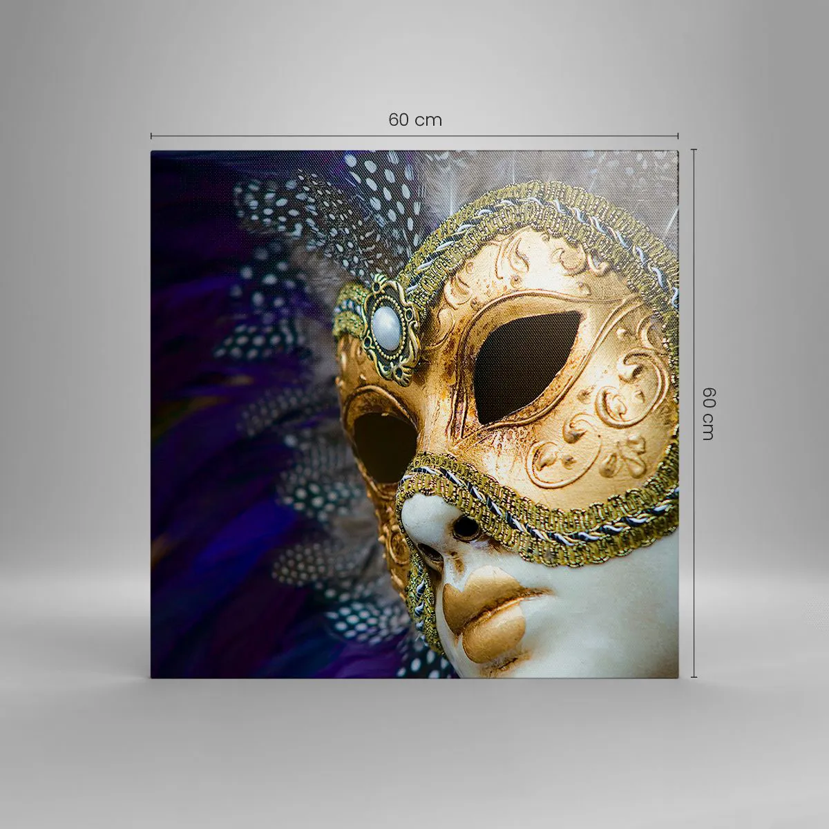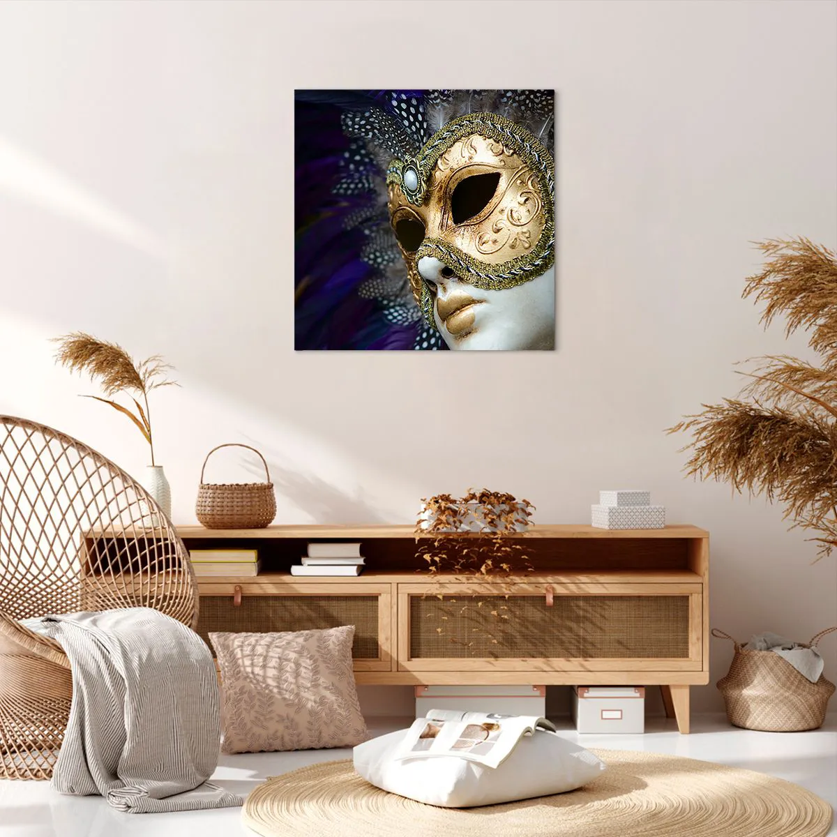 • Maske, Kunst, Venedig, Menschen, Masken, Für das Esszimmer, für den Flur, für das Wohnzimmer, für das Schlafzimmer, Blau, Gold, Quadrat