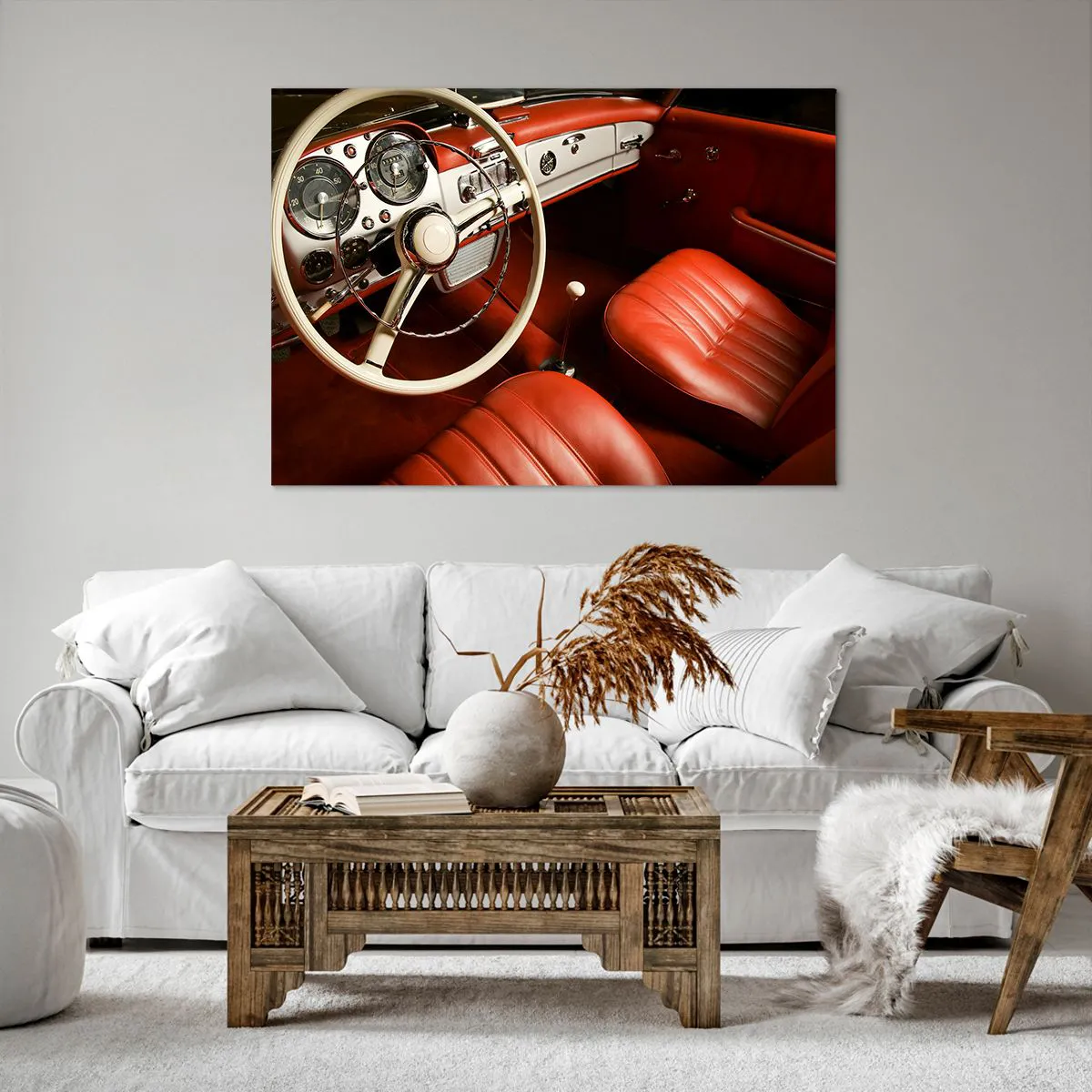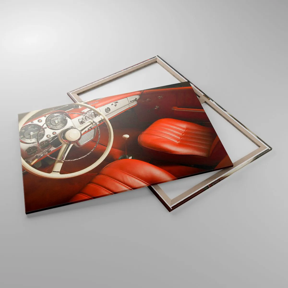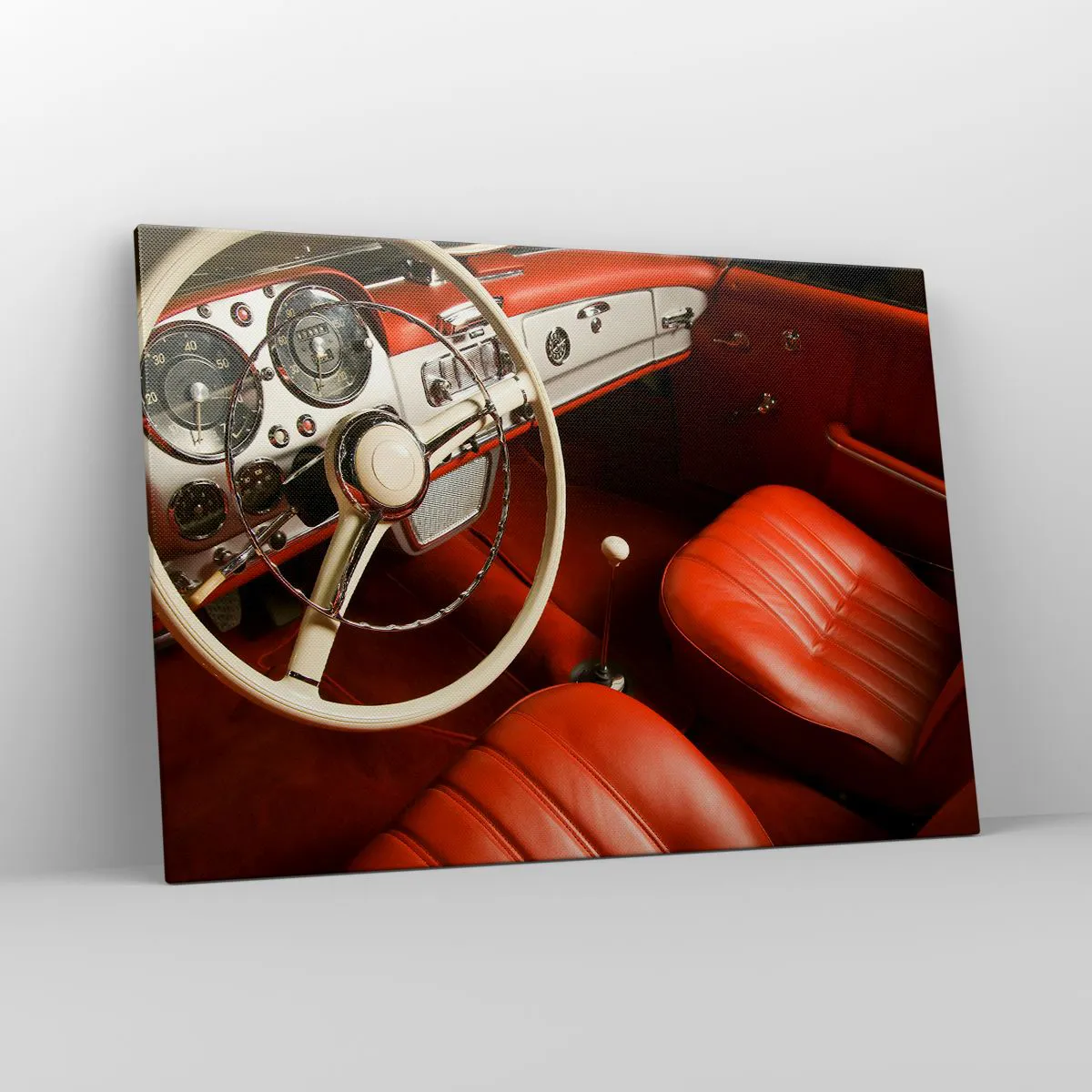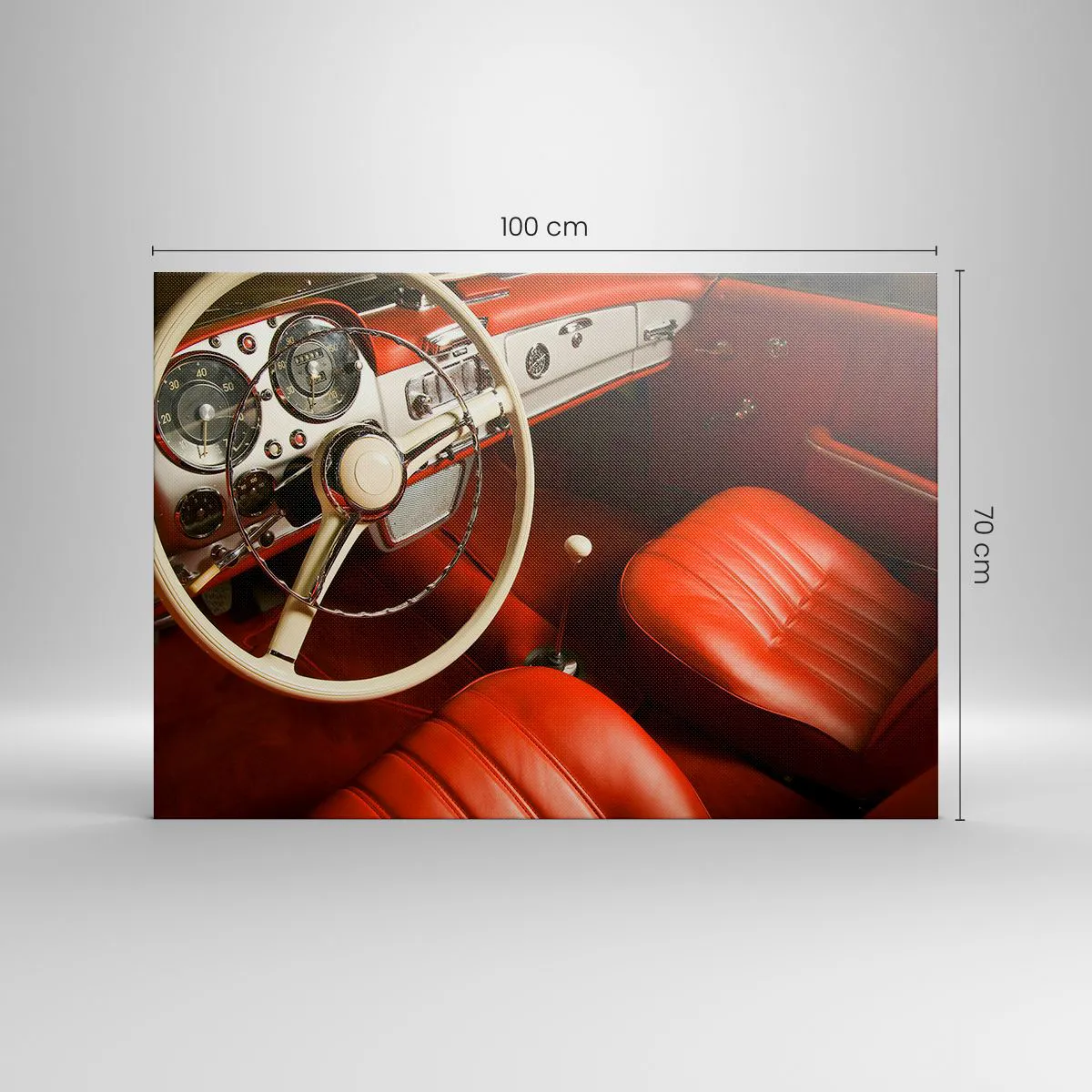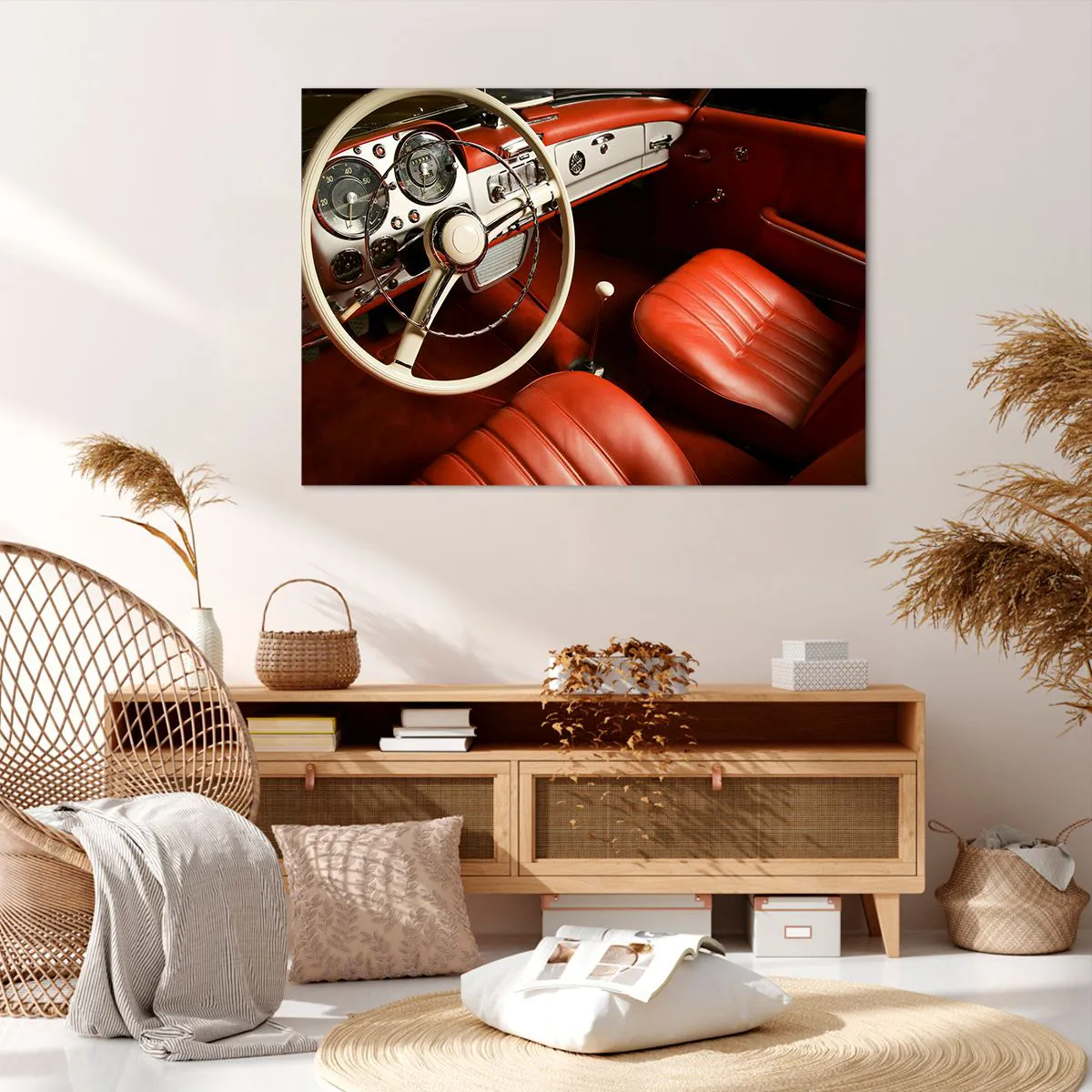 Bild auf Leinwand - Leinwandbild - Oldtimer-Innenraum mit roten Ledersitzen - 100x70cm - Luxus im Vintagestil - Moderne Wanddekoration für Wohnzimmer und Schlafzimmer ARTTOR