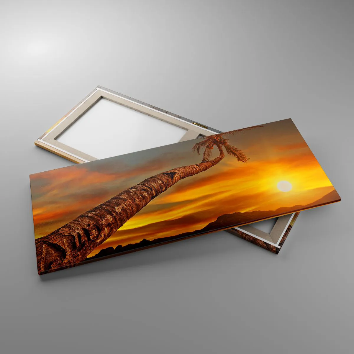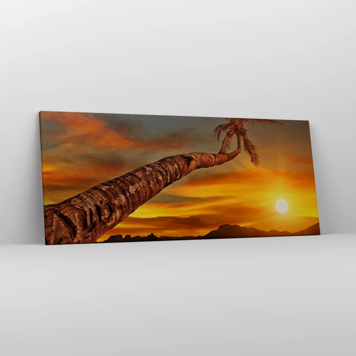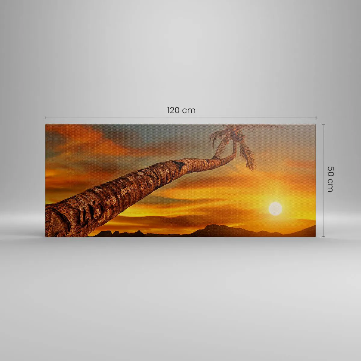 Bild auf Leinwand - Leinwandbild - Palme am Strand bei Sonnenuntergang mit Blick auf das Meer - 120x50cm - Exotischer Urlaub, karibisches Abenteuer - Moderne Wanddekoration für Wohnzimmer und Schlafzimmer ARTTOR