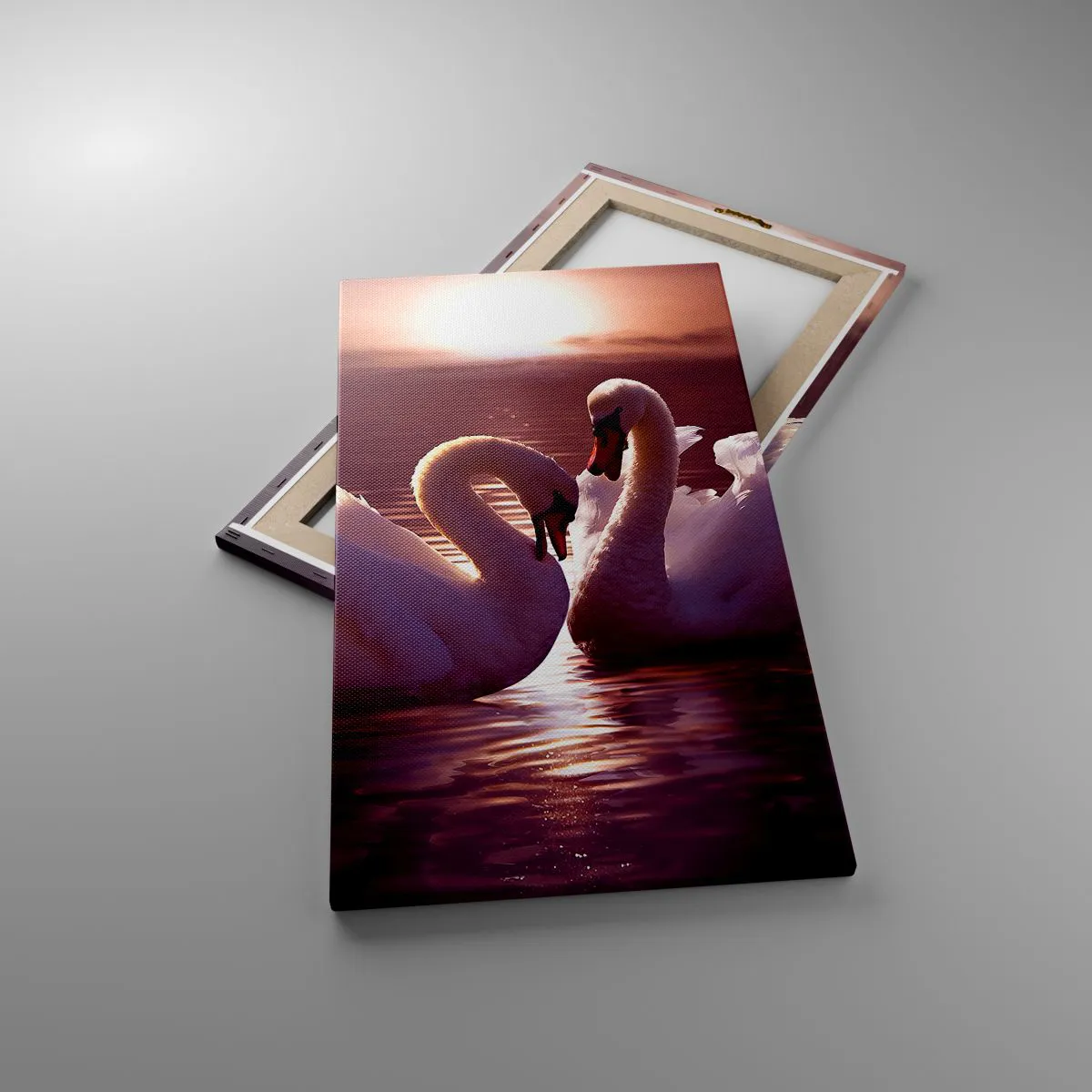 Die Leinwand wird über den Rahmen gespannt. Die Seiten und Kanten werden gedruckt, um das Bild fortzusetzen. Das Bild ist fertig zum Aufhängen an der Wand. Jedes Produkt hat einen am Rahmen befestigten Anhänger und ein Montageset (Schraube + Stift).