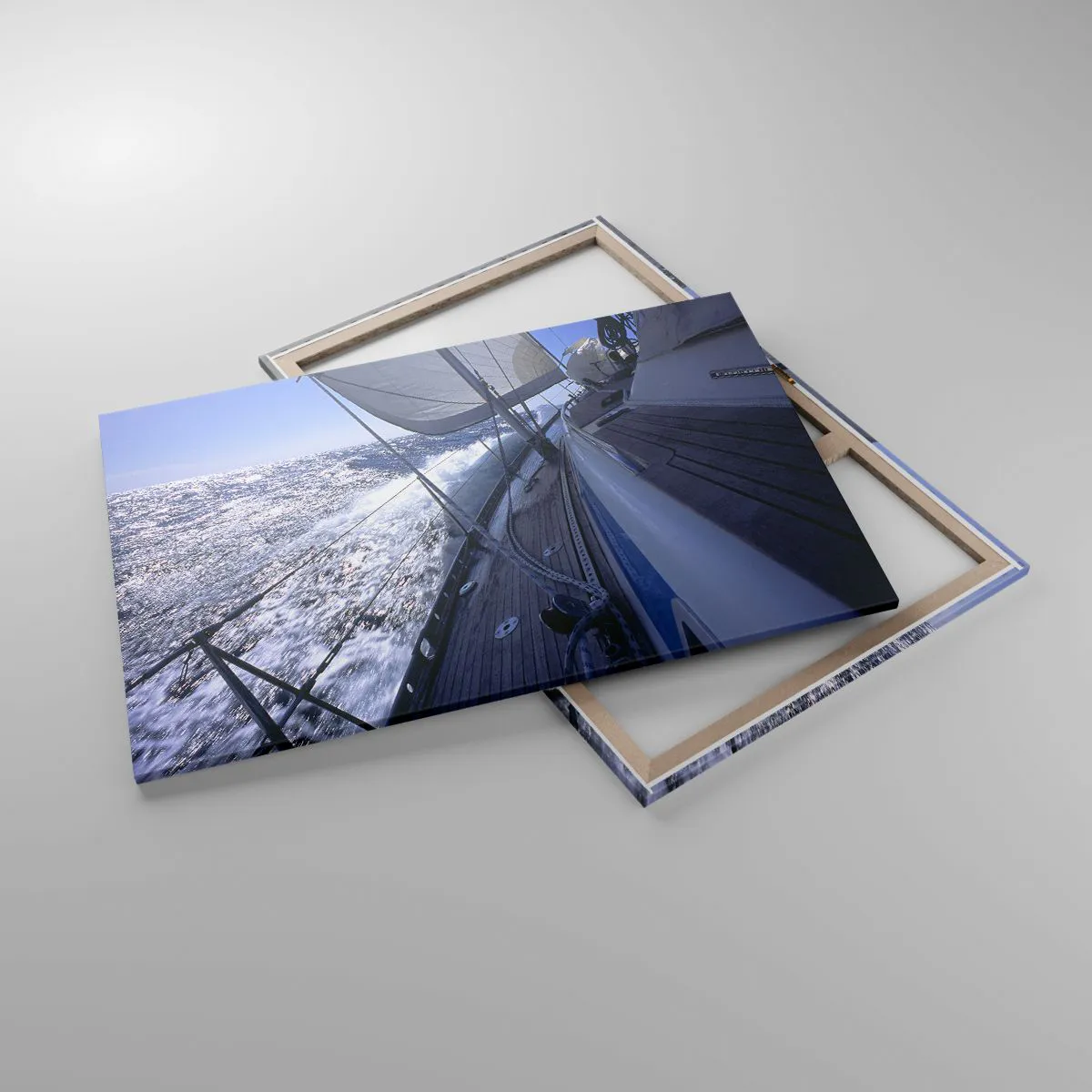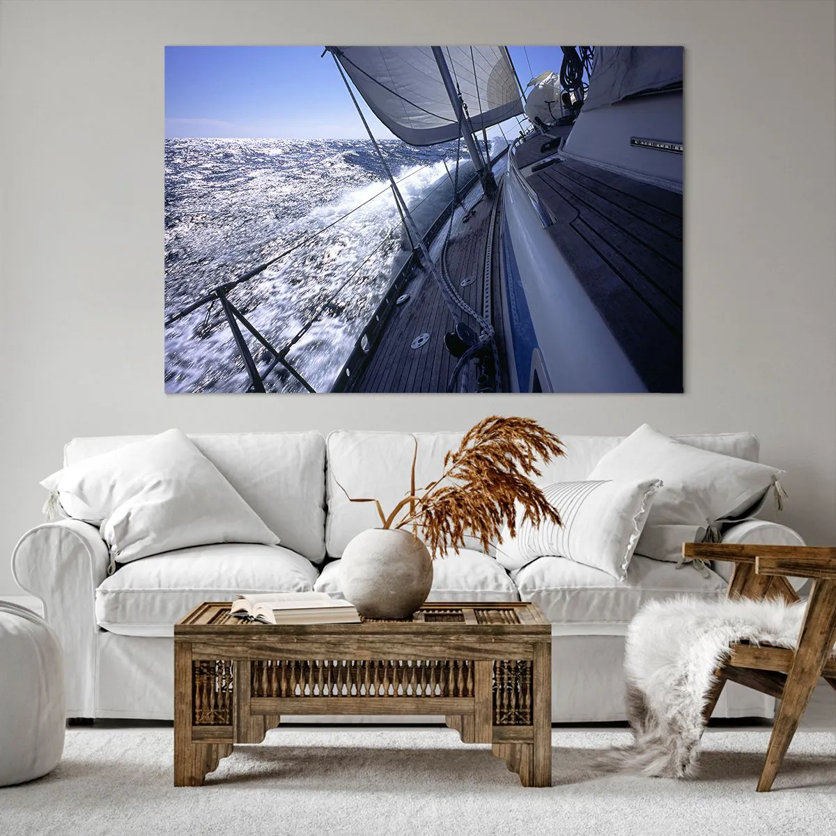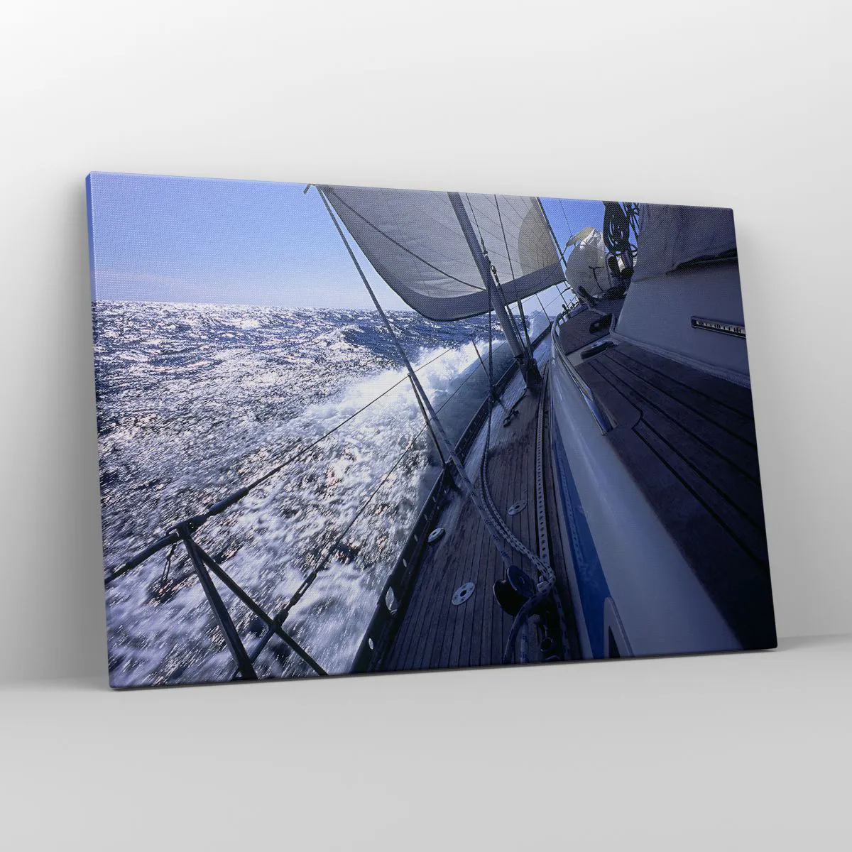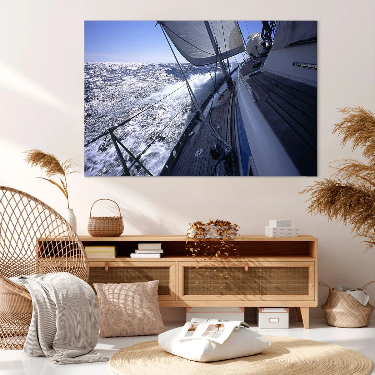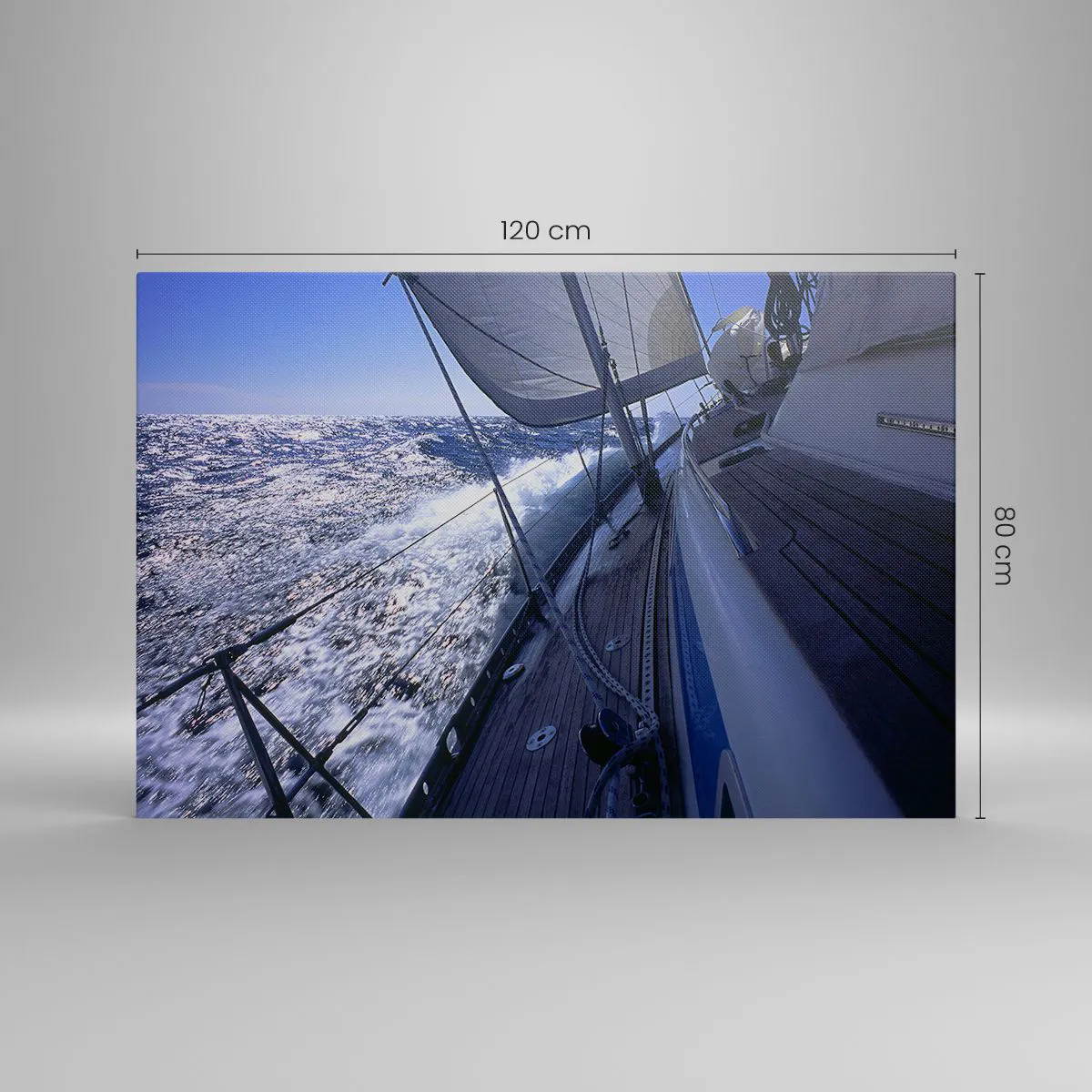 Bild auf Leinwand - Leinwandbild - Ein Segelboot in stürmischer See mit weißen Segeln und einem Holzdeck. - 120x80cm - Ich weiß was es heißt ein Vogel zu sein - Moderne Wanddekoration für Wohnzimmer und Schlafzimmer ARTTOR