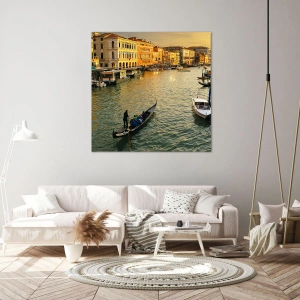 Bild auf Leinwand - Leinwandbild - Gondel auf einem Kanal in Venedig bei Sonnenuntergang - 100x70cm - Auf der Sonnenseite der Straße - Moderne Wanddekoration für Wohnzimmer und Schlafzimmer ARTTOR