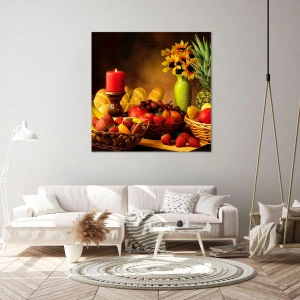 • Gastronomie, Blumen, Früchte, Gastronomie, Für das Esszimmer, für die Küche Rot, Gelb, Braun, Quadrat