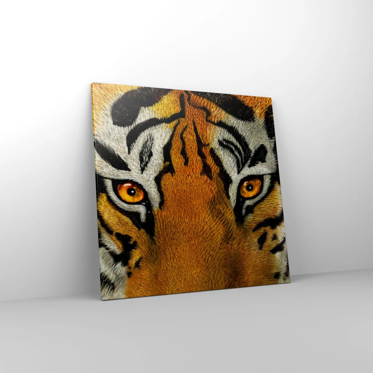 Die Leinwand wird über den Rahmen gespannt. Die Seiten und Kanten werden gedruckt, um das Bild fortzusetzen. Das Bild ist fertig zum Aufhängen an der Wand. Jedes Produkt hat einen am Rahmen befestigten Anhänger und ein Montageset (Schraube + Stift).