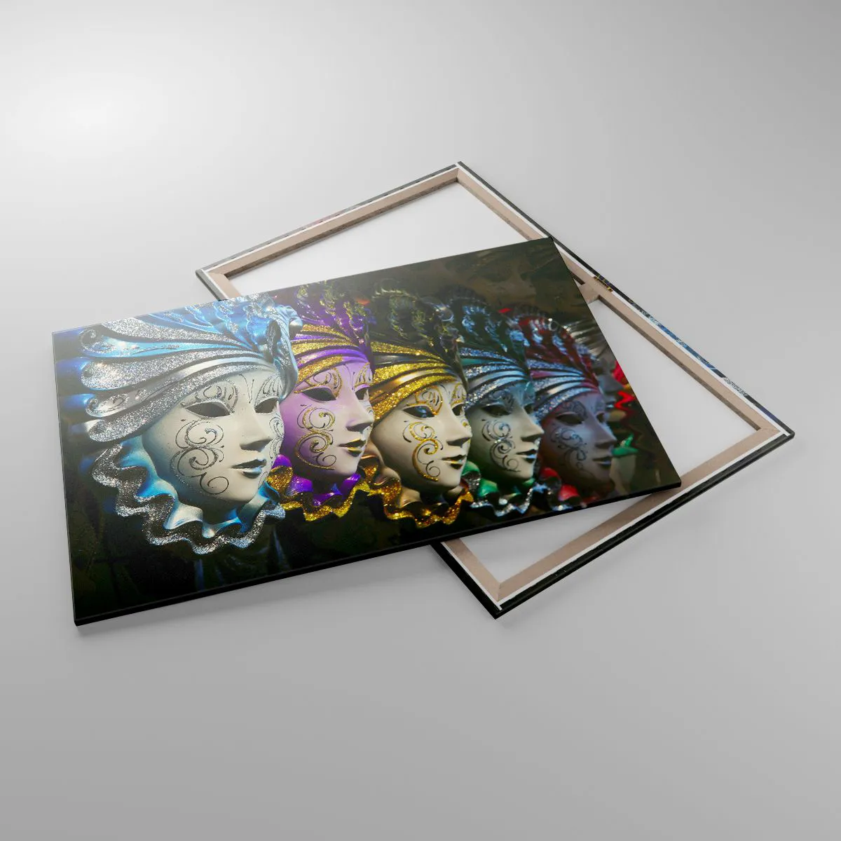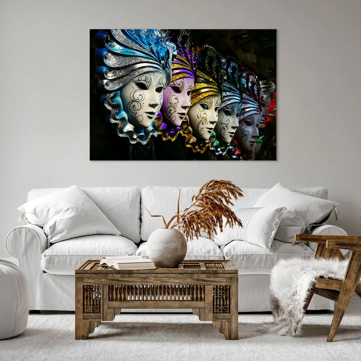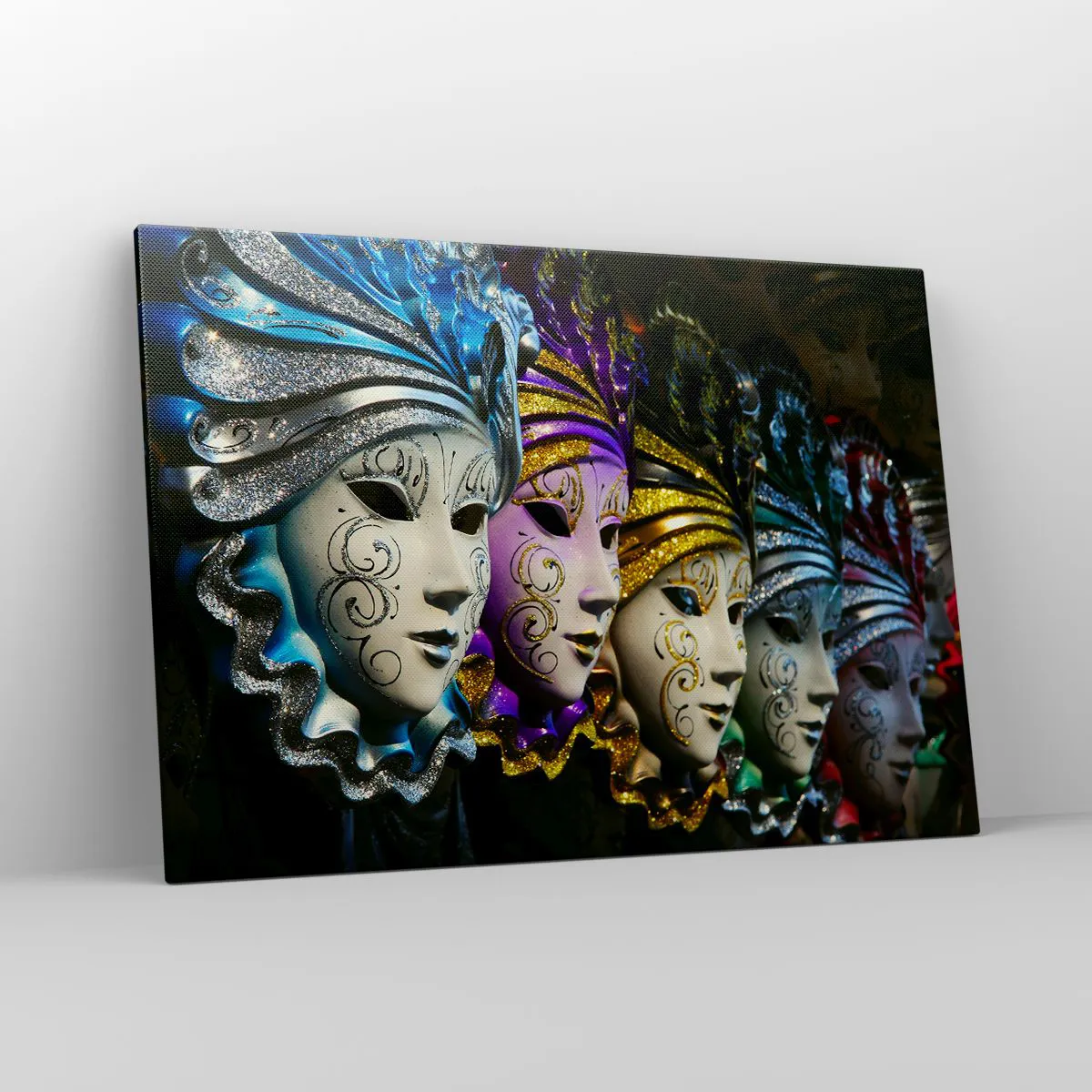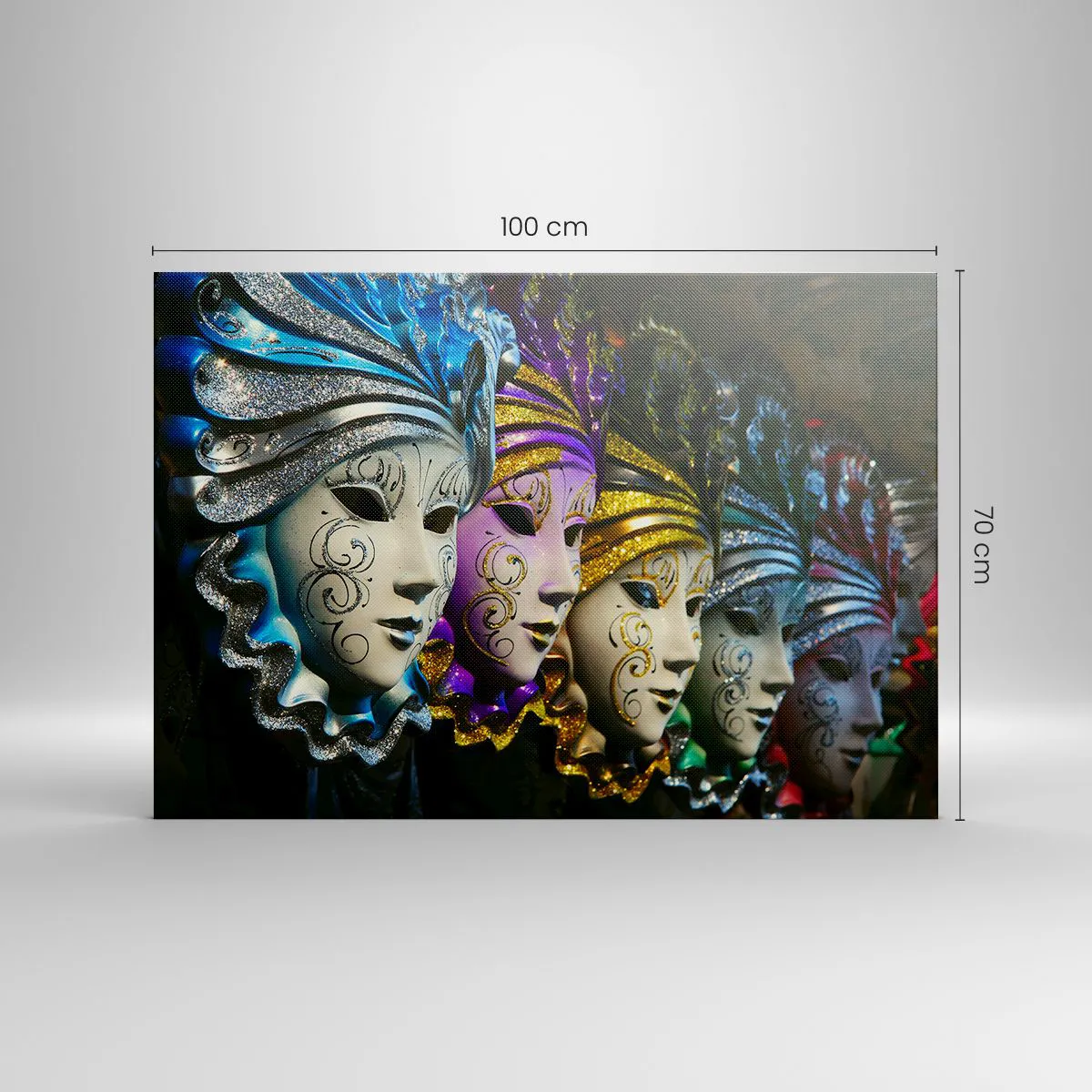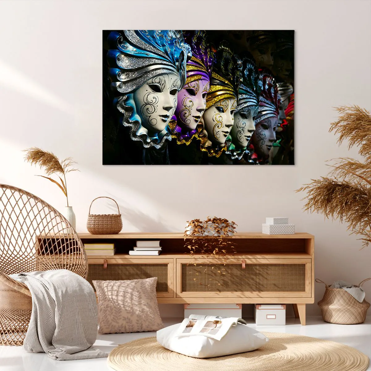 Bild auf Leinwand - Leinwandbild - Venezianische Masken in verschiedenen Farben mit dekorativen Mustern - 100x70cm - Geheimnis in Gold und Silber - Moderne Wanddekoration für Wohnzimmer und Schlafzimmer ARTTOR