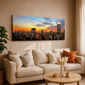 Bild auf Leinwand - Leinwandbild - Stadtpanorama mit beleuchteten Wolkenkratzern in der Abenddämmerung - 120x80cm - Leuchtende amerikanische Nacht - Moderne Wanddekoration für Wohnzimmer und Schlafzimmer ARTTOR
