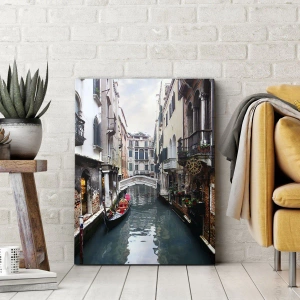 Bild auf Leinwand - Leinwandbild - Venezianische Landschaft mit Gondel und Brücke - 70x70 cm