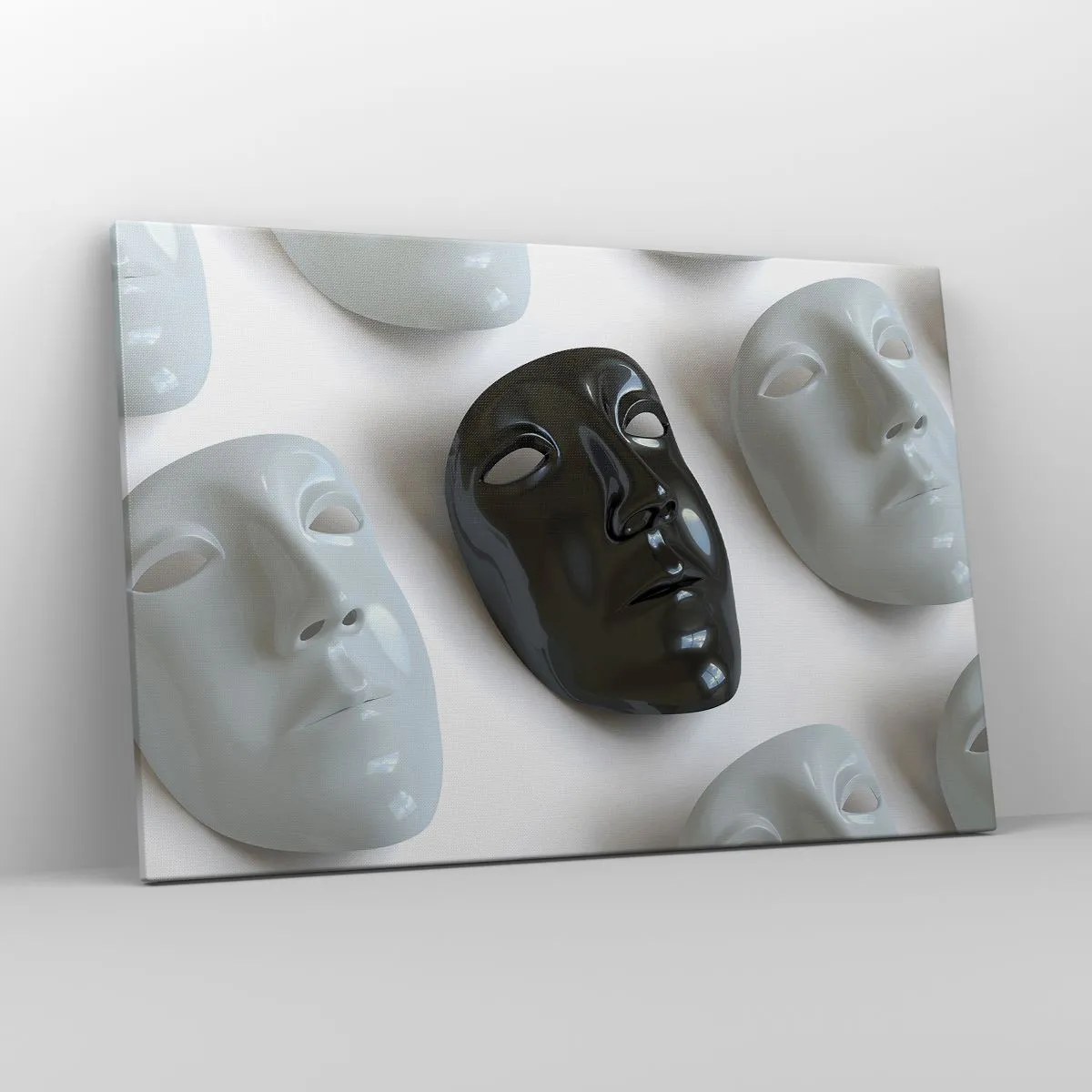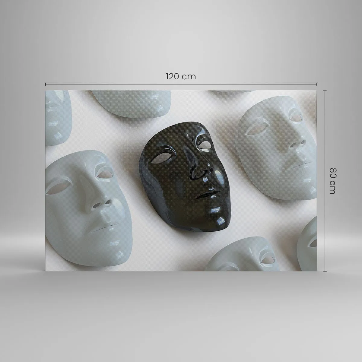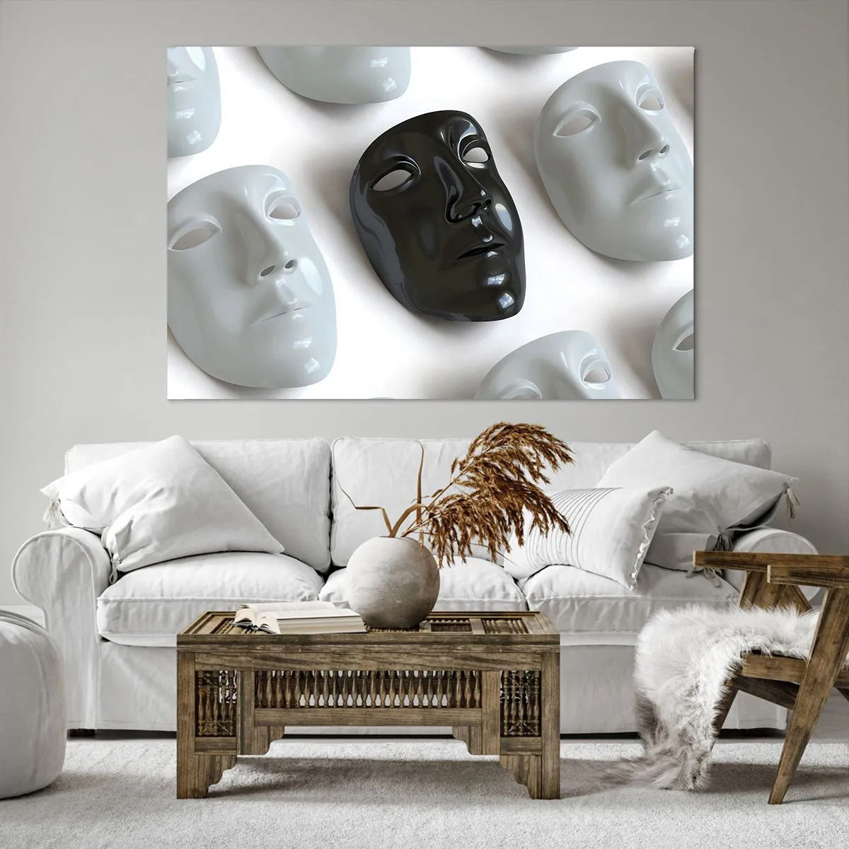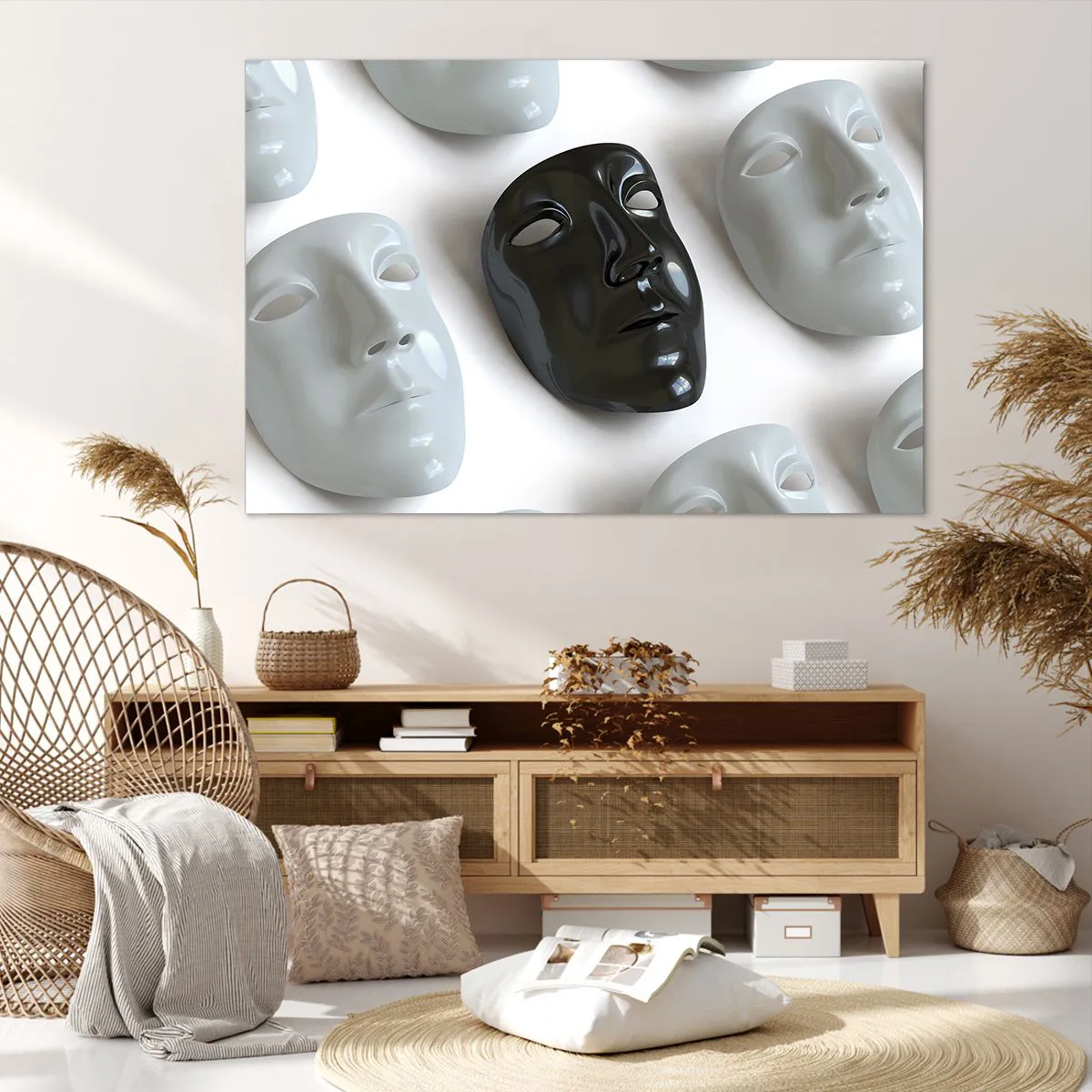 Bild auf Leinwand - Leinwandbild - Schwarz-weiße Masken auf hellem Hintergrund - 120x80cm - Wie hebt man sich ab? - Moderne Wanddekoration für Wohnzimmer und Schlafzimmer ARTTOR