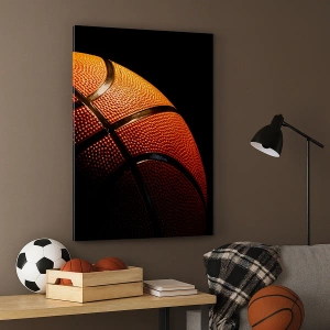 Bild auf Leinwand - Leinwandbild - Nahaufnahme eines Basketballs vor schwarzem Hintergrund - 100x70cm - Schön wie ein Planet - Moderne Wanddekoration für Wohnzimmer und Schlafzimmer ARTTOR
