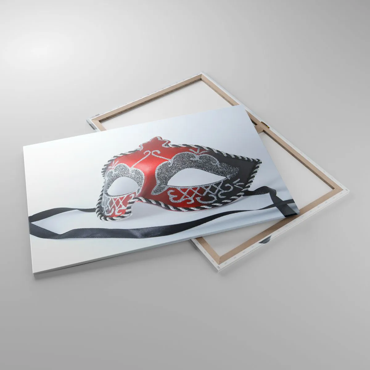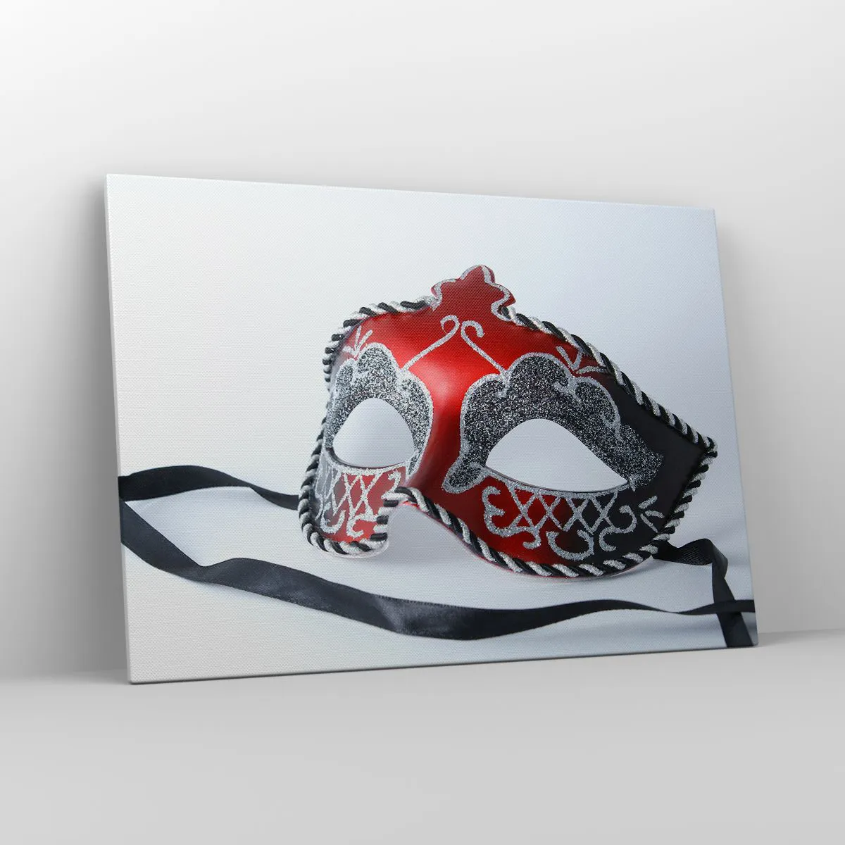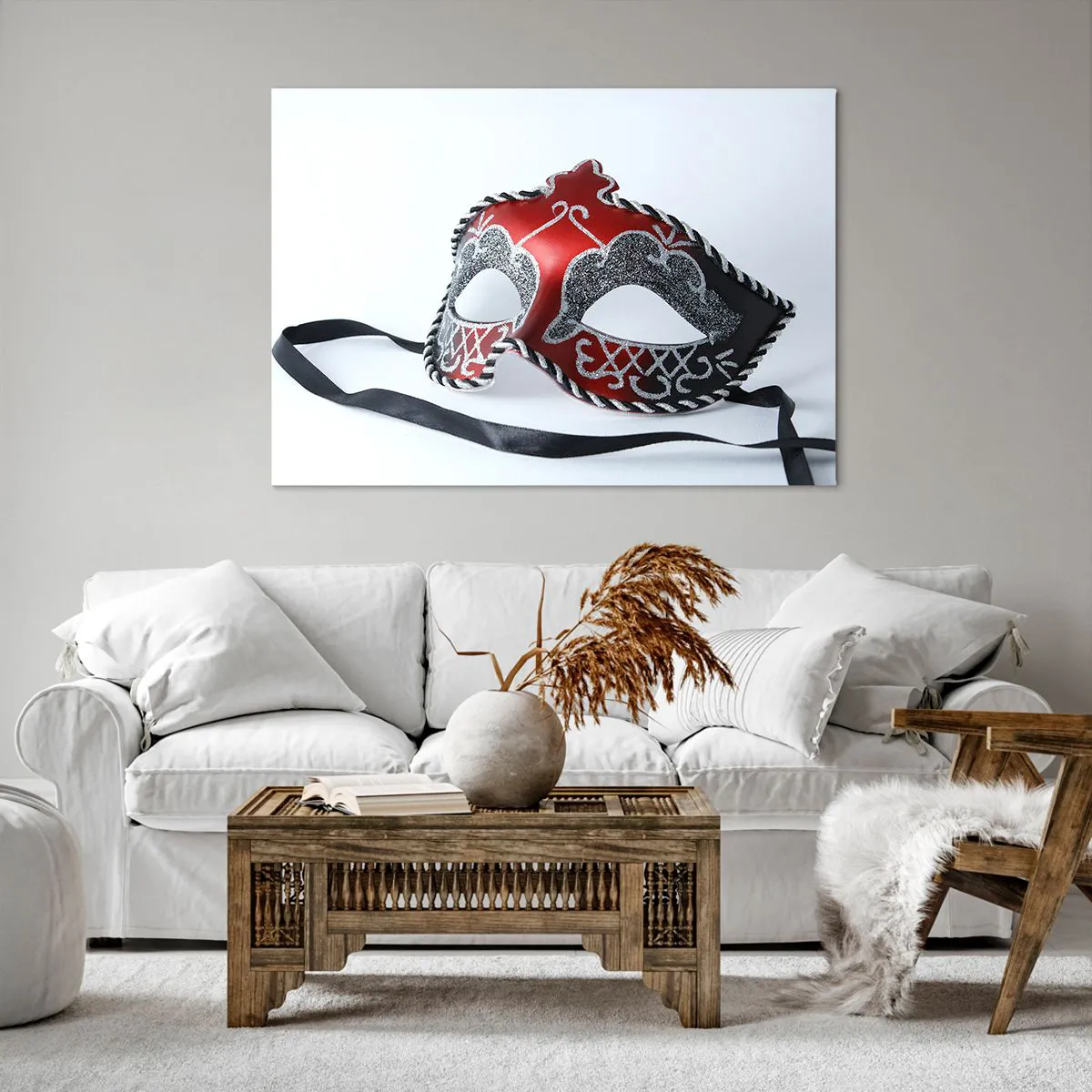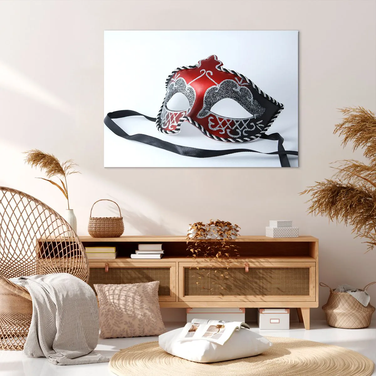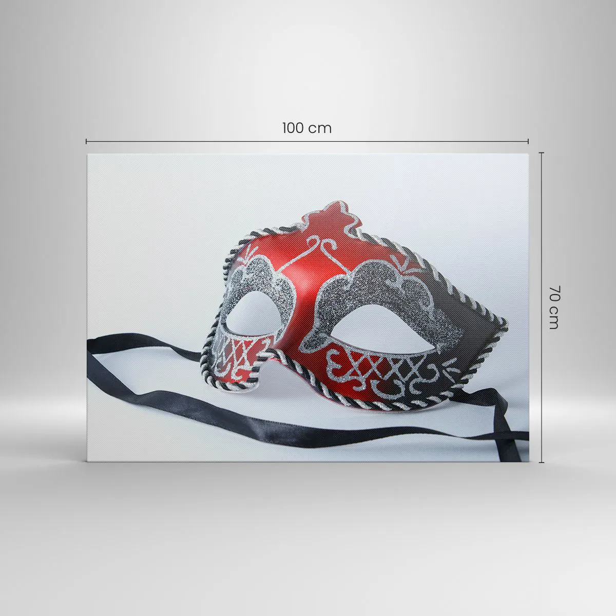 Bild auf Leinwand - Leinwandbild - Rote Karnevalsmaske auf hellem Hintergrund - 100x70cm - Einladung zum Abschlussball - Moderne Wanddekoration für Wohnzimmer und Schlafzimmer ARTTOR