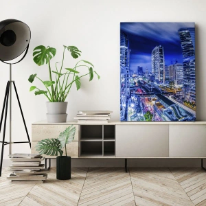 Bild auf Leinwand - Leinwandbild - Nachtstadtpanorama mit Wolkenkratzern und Straßenlaternen - 120x80cm - Rhythmen der Nachtstadt - Moderne Wanddekoration für Wohnzimmer und Schlafzimmer ARTTOR