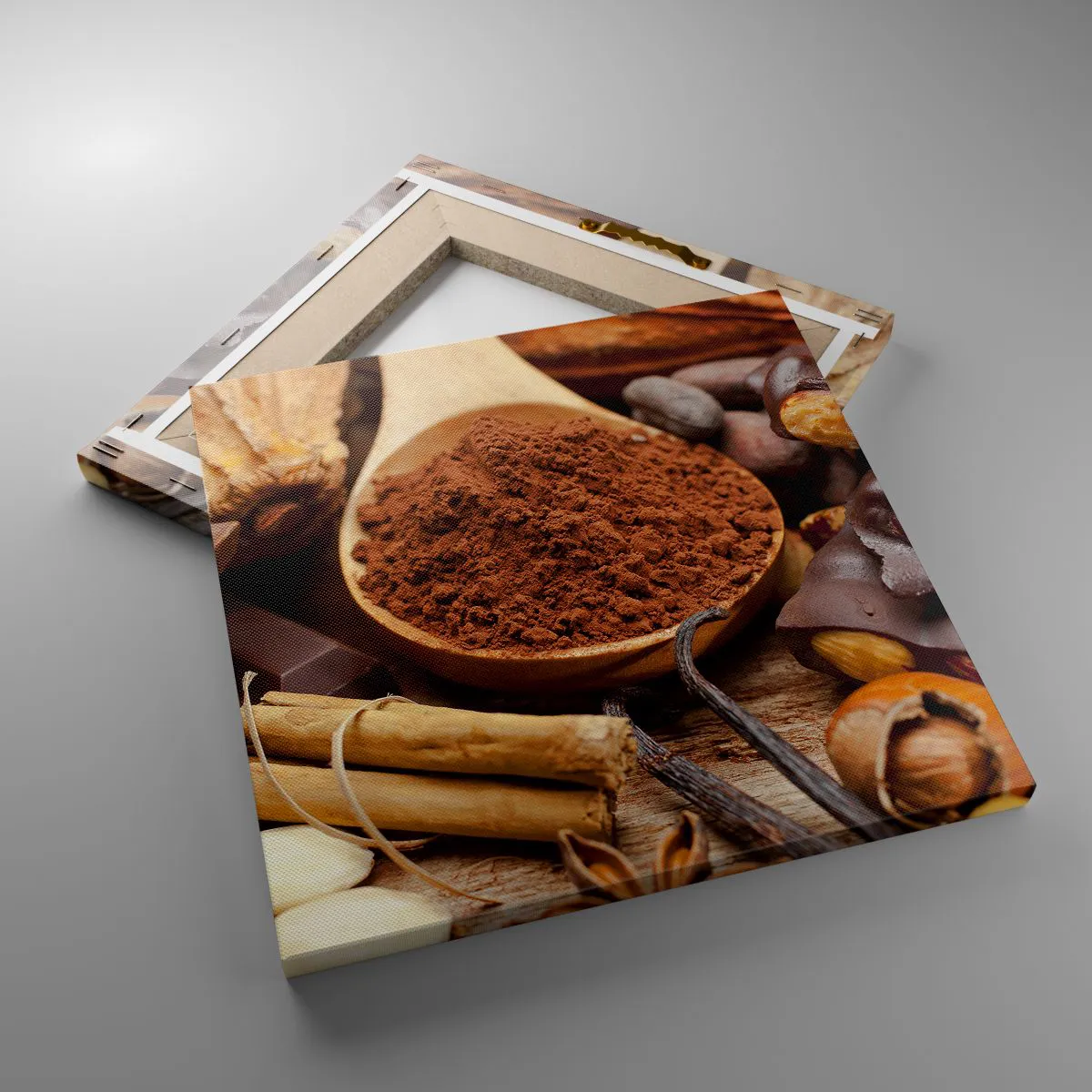 Die Leinwand wird über den Rahmen gespannt. Die Seiten und Kanten werden gedruckt, um das Bild fortzusetzen. Das Bild ist fertig zum Aufhängen an der Wand. Jedes Produkt hat einen am Rahmen befestigten Anhänger und ein Montageset (Schraube + Stift).