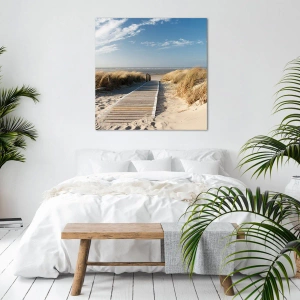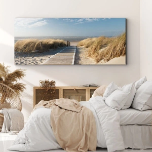 Bild auf Leinwand - Leinwandbild - Hinter der Düne, im Rauschen des Grases - 90x30 cm