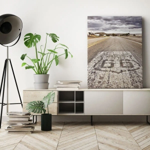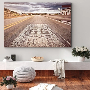 Bild auf Leinwand - Leinwandbild - Route 66 in einem Wüstenklima mit malerischem Himmel - 120x80cm - Mother Road - eine amerikanische Legende - Moderne Wanddekoration für Wohnzimmer und Schlafzimmer ARTTOR
