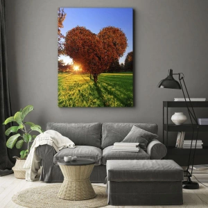 Die Leinwand wird über den Rahmen gespannt. Die Seiten und Kanten werden gedruckt, um das Bild fortzusetzen. Das Bild ist fertig zum Aufhängen an der Wand. Jedes Produkt hat einen am Rahmen befestigten Anhänger und ein Montageset (Schraube + Stift).