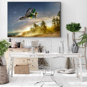 Die Leinwand wird über den Rahmen gespannt. Die Seiten und Kanten werden gedruckt, um das Bild fortzusetzen. Das Bild ist fertig zum Aufhängen an der Wand. Jedes Produkt hat einen am Rahmen befestigten Anhänger und ein Montageset (Schraube + Stift).
