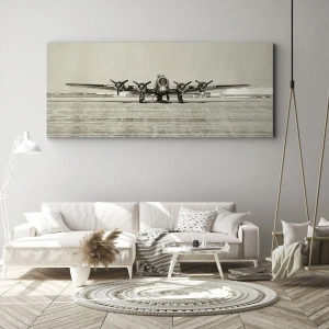 Bild auf Leinwand - Leinwandbild - Historisches Flugzeug auf dem Flughafen in Sepia - 120x80cm - Wie immer bereit - Moderne Wanddekoration für Wohnzimmer und Schlafzimmer ARTTOR