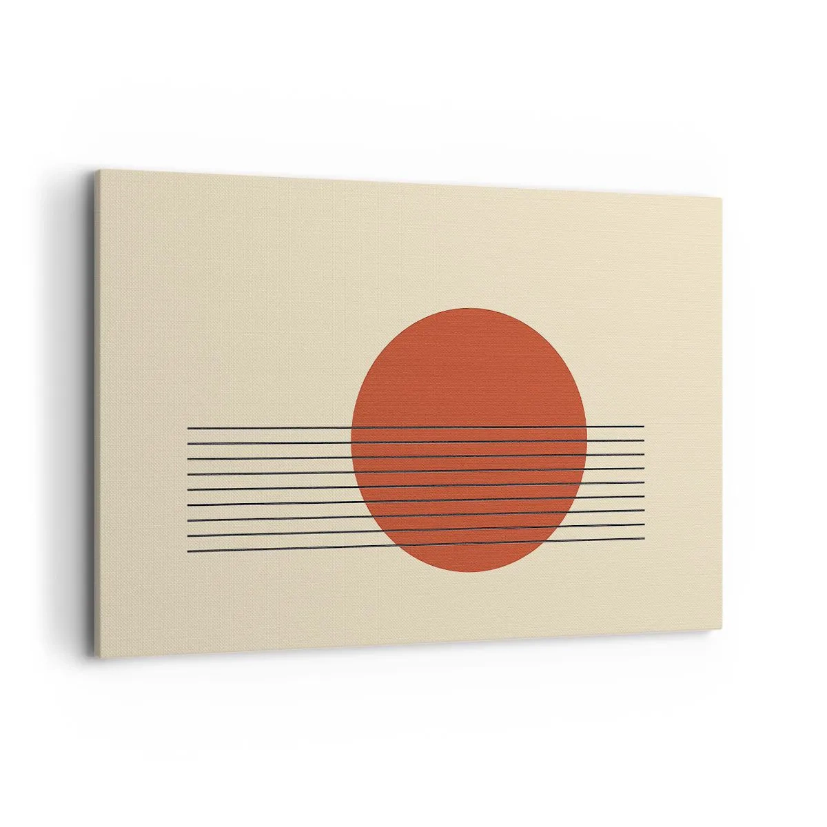 Bild auf Leinwand - Leinwandbild - Abstrakter roter Kreis mit Linien auf beigem Hintergrund. - 120x80cm - Immer wieder und weiter - Moderne Wanddekoration für Wohnzimmer und Schlafzimmer ARTTOR