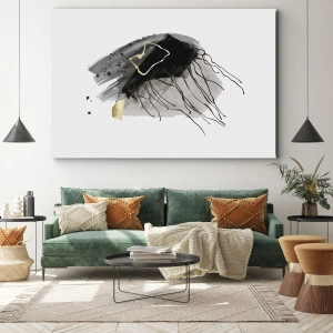 Bild auf Leinwand - Leinwandbild - Eine abstrakte Komposition mit Akzenten in Schwarz und Gold. - 120x80cm - In Schwarz und Gold - Moderne Wanddekoration für Wohnzimmer und Schlafzimmer ARTTOR
