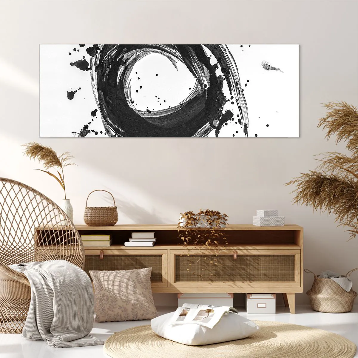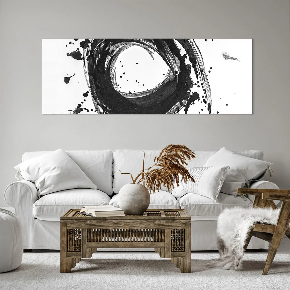 Bild auf Leinwand - Leinwandbild - Schwarze Abstraktion in Form eines Kreises auf weißem Hintergrund - 140x50cm - Der Wirbel der Schöpfung - Moderne Wanddekoration für Wohnzimmer und Schlafzimmer ARTTOR