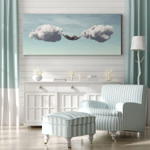 Bild auf Leinwand - Leinwandbild - Eine Person entspannt in einer Hängematte in den Wolken - 100x70cm - Die Behaglichkeit des Augenblicks - Moderne Wanddekoration für Wohnzimmer und Schlafzimmer ARTTOR