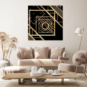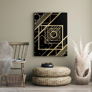Bild auf Leinwand - Leinwandbild - Goldene geometrische Muster auf schwarzem Hintergrund - 120x50cm - Goldene Geometrie - Moderne Wanddekoration für Wohnzimmer und Schlafzimmer ARTTOR