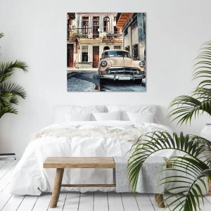 Dieser 70 x 50 cm große Leinwanddruck mit dem Titel „Siesta in Havanna“ zeigt einen Oldtimer, der vor dem Hintergrund urbaner Architektur geparkt ist. Der Retro-Stil und die sorgfältig wiedergegebenen Details schaffen eine einzigartige Atmosphäre, die perfekt zu Innenräumen passt, die sowohl im Vintage- als auch im modernen Stil eingerichtet sind.