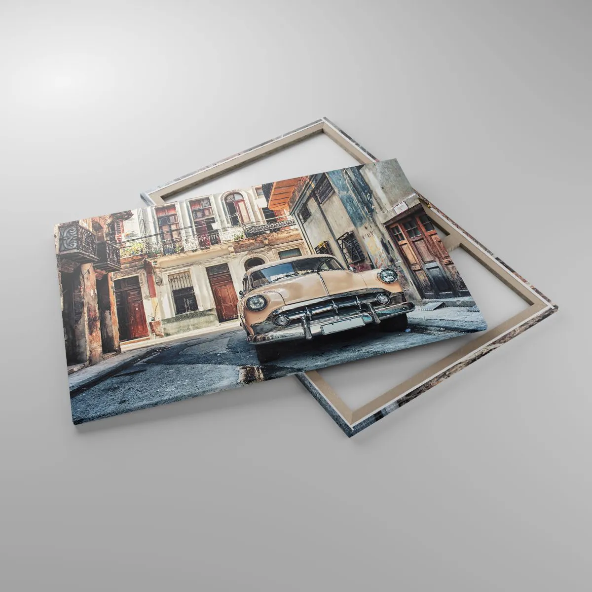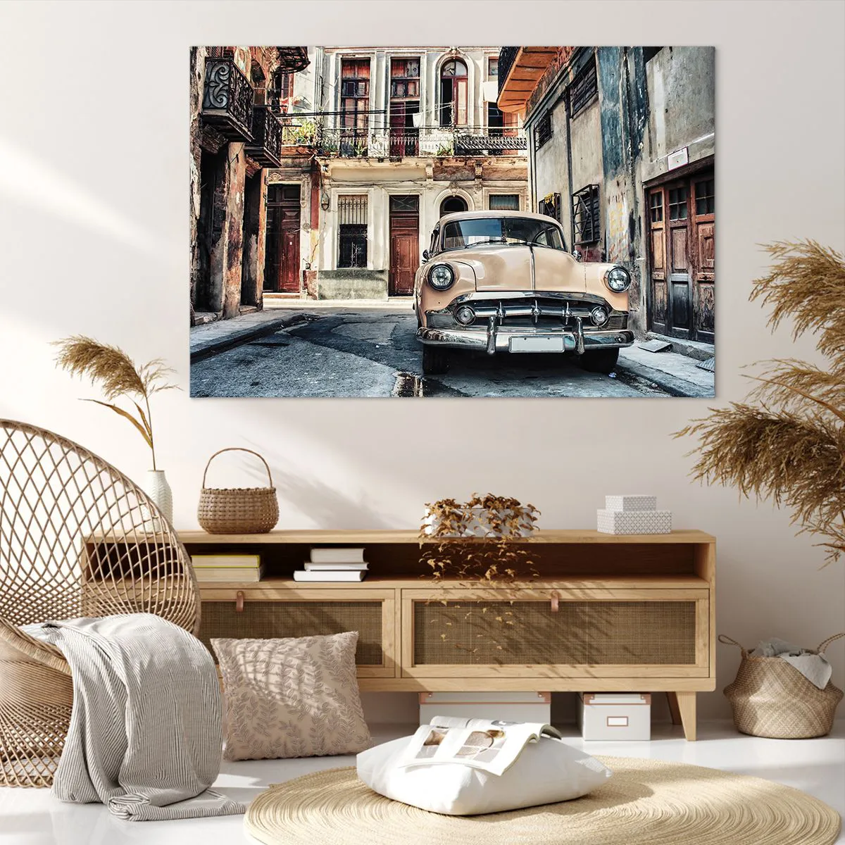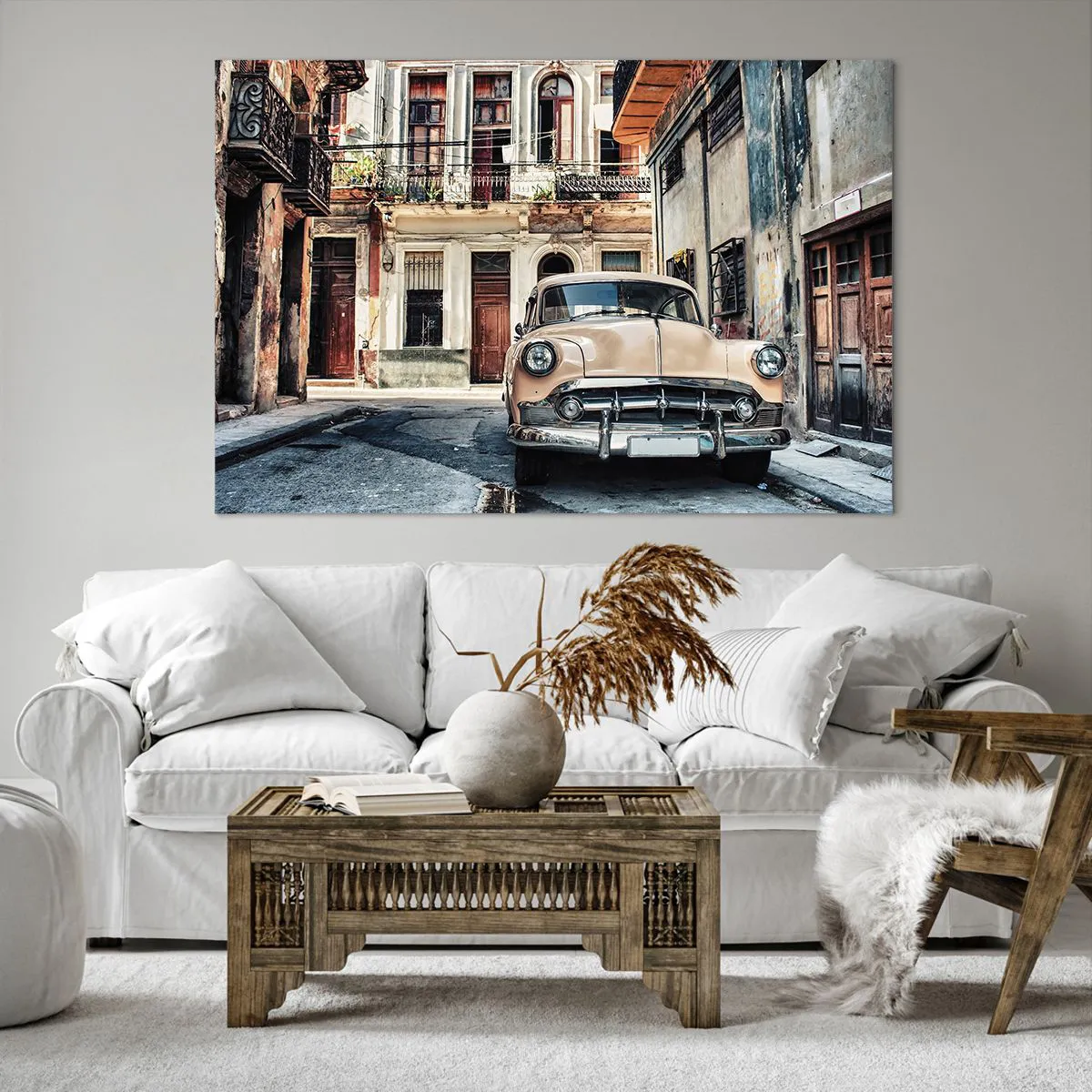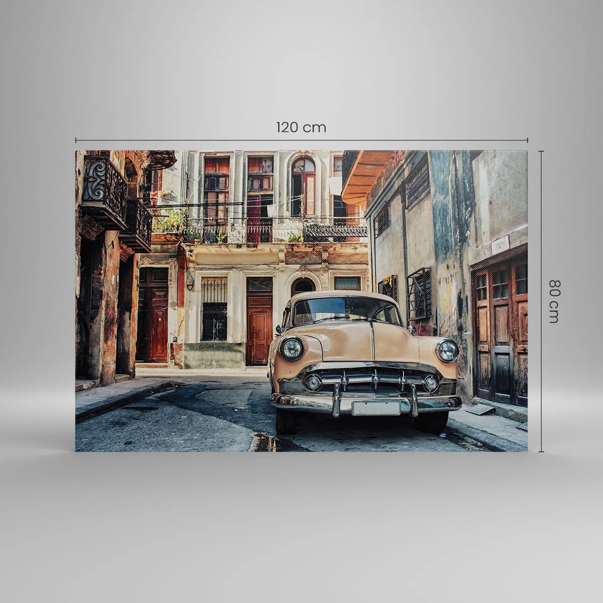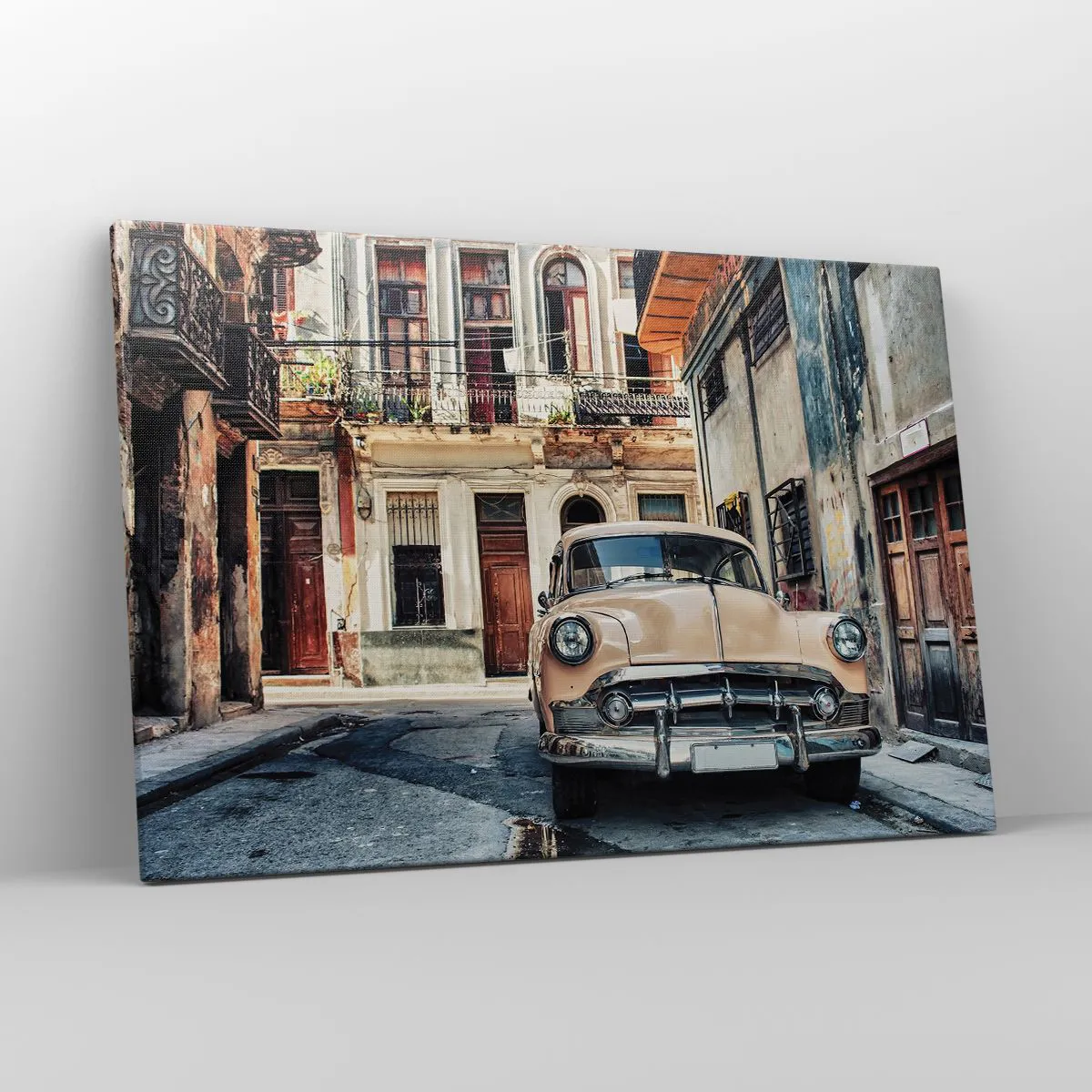 Bild auf Leinwand - Leinwandbild - Ein Oldtimer vor der Kulisse urbaner Architektur - 120x80cm - Die Siesta in Havanna - Moderne Wanddekoration für Wohnzimmer und Schlafzimmer ARTTOR