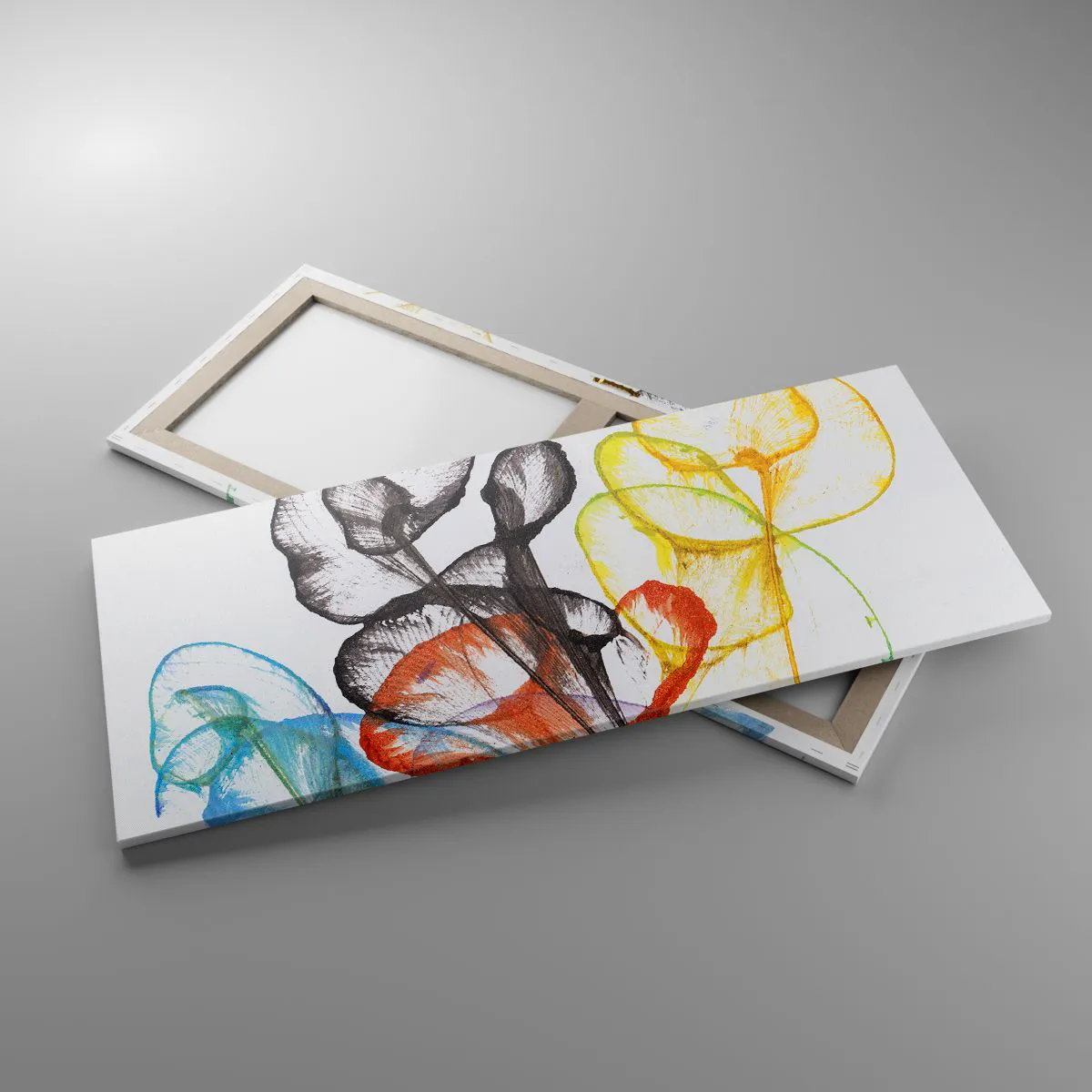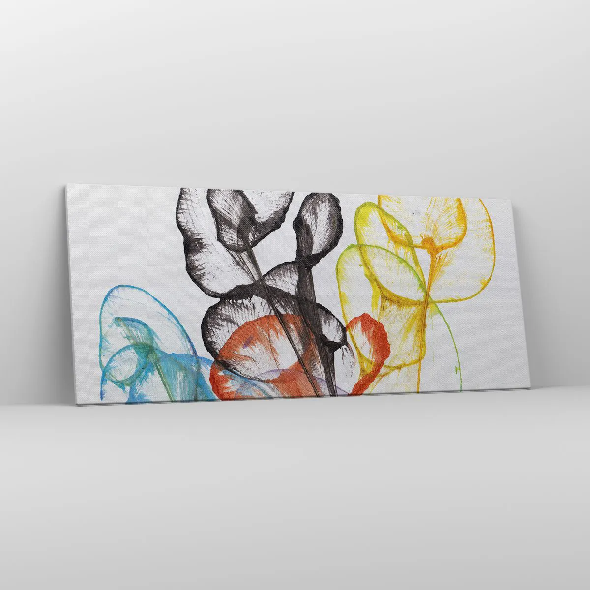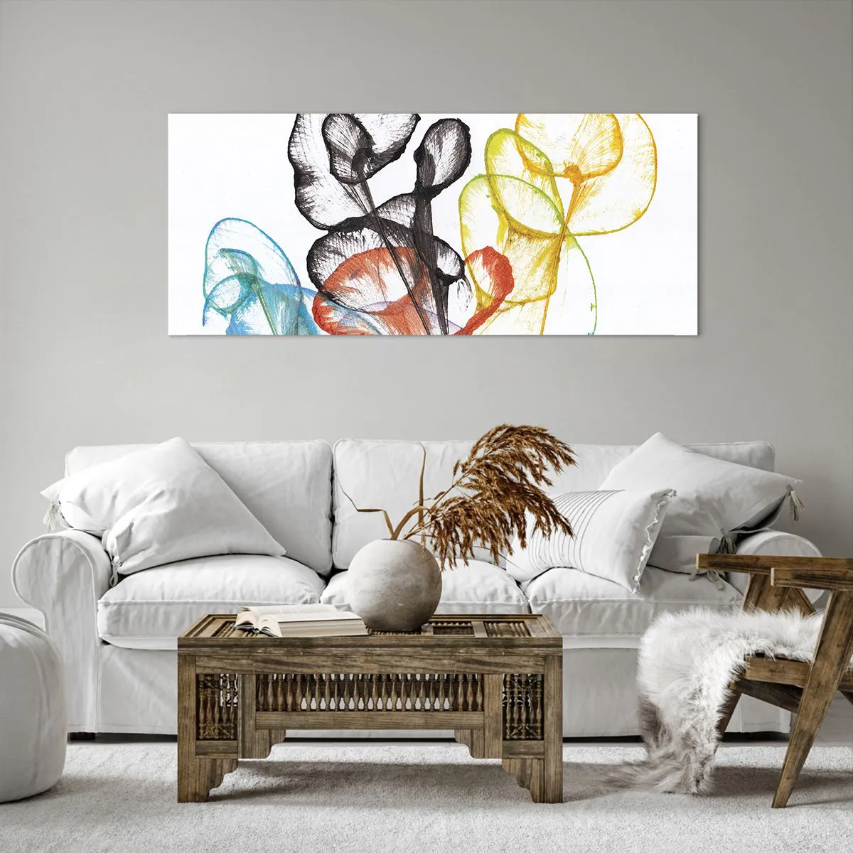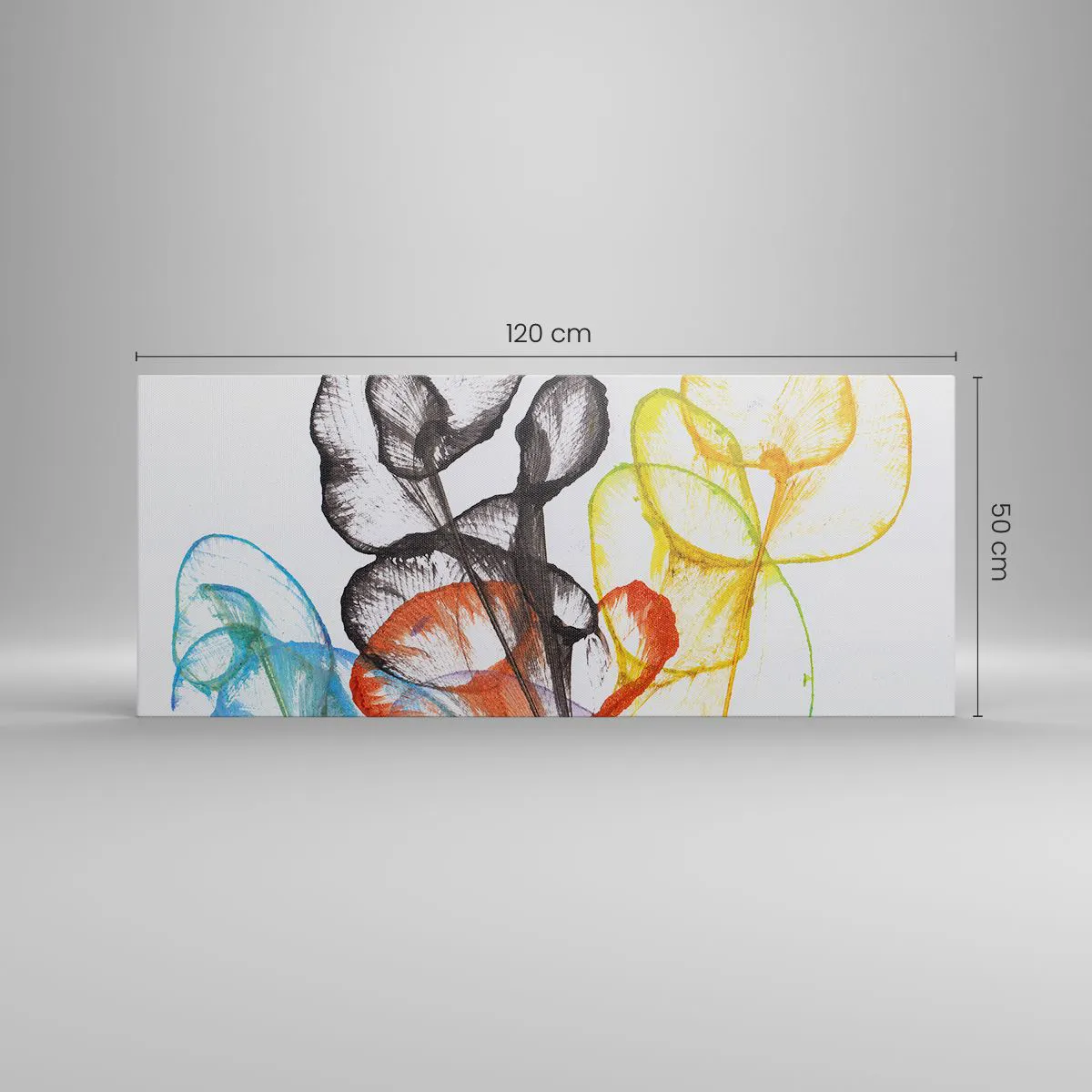 Bild auf Leinwand - Leinwandbild - Bunte transparente Blumen auf weißem Hintergrund - 120x50cm - Blumen mit Seele - Moderne Wanddekoration für Wohnzimmer und Schlafzimmer ARTTOR