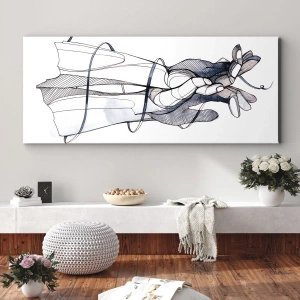 Die Leinwand wird über den Rahmen gespannt. Die Seiten und Kanten werden gedruckt, um das Bild fortzusetzen. Das Bild ist fertig zum Aufhängen an der Wand. Jedes Produkt hat einen am Rahmen befestigten Anhänger und ein Montageset (Schraube + Stift).