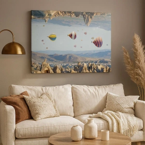 Bild auf Leinwand - Leinwandbild - Bunte Ballons über einer felsigen Landschaft - 120x80cm - Hier ist alles möglich - Moderne Wanddekoration für Wohnzimmer und Schlafzimmer ARTTOR